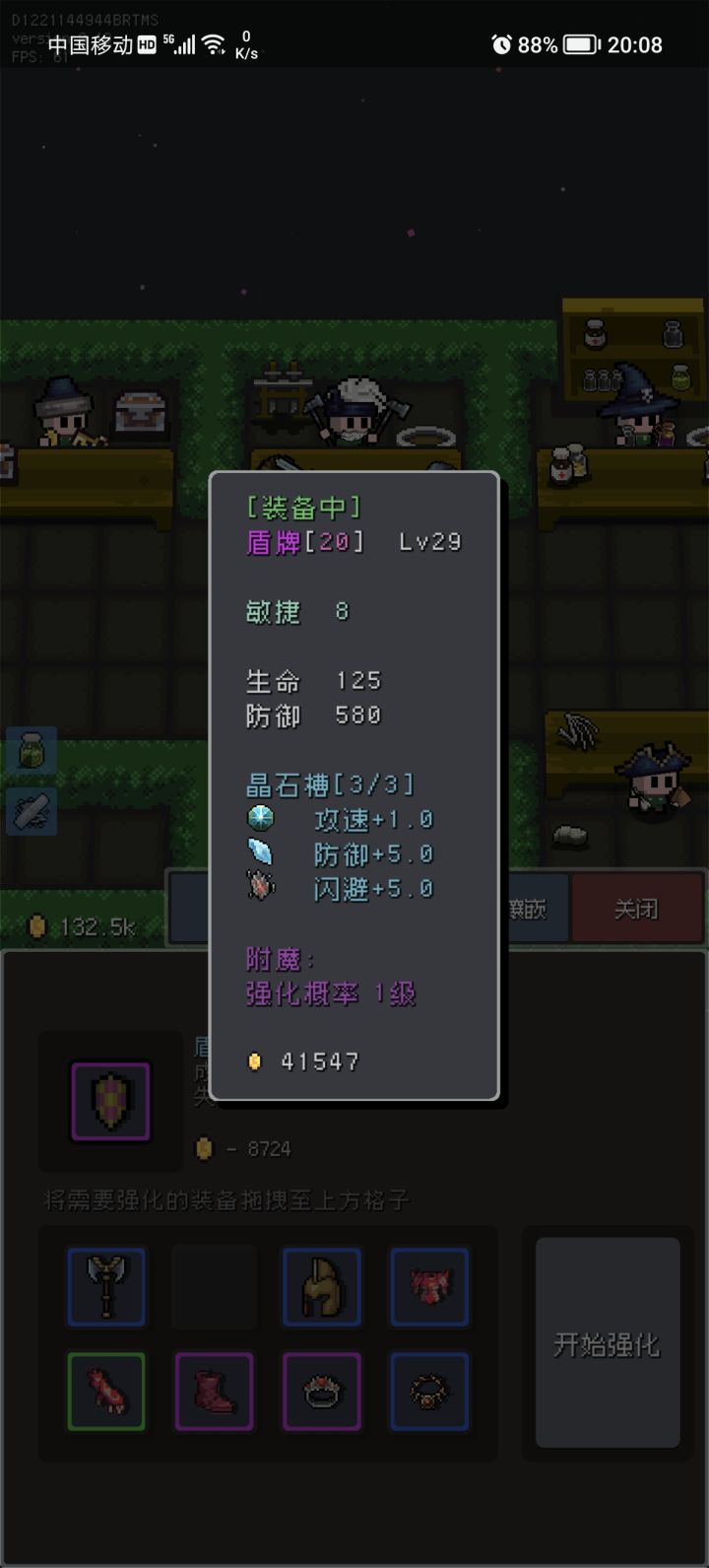 目前个人用两台手机实验发现同颜色装备强化成功、失败、掉级顺序是固定的(只测试了强化10以上的装备)。利用这个技巧可以快速强化装备到20,首先拿两台手机读取同样的进度,手机1:斧头(垫刀)强化出现的顺序是(失败,失败,掉级,失败,成功),手机2:盾牌(强化目标),前四次强化斧头,第五次成功的放上盾牌。8件附魔强化2的,半个小时内就可以出强化+20。只有一台手机的也可以尝试断网不上传存档,先记录强化