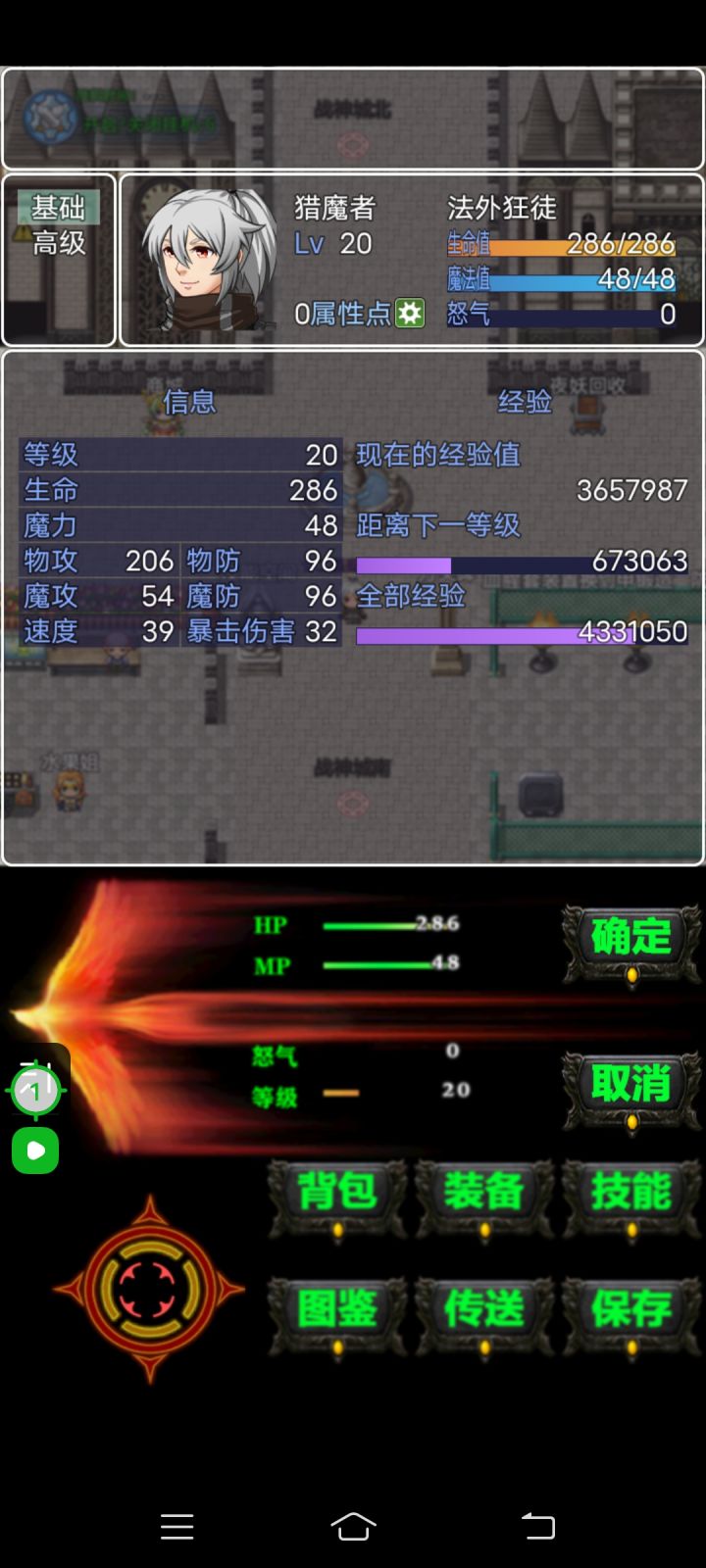 简单的攻略,进游戏找村长领任务,会给你武器和衣服,然后点取消键加两点物防,出门杀鸡,升一级后再加一点防去下个地图杀鹿,打个头盔,看好自己的防,再洗点全加攻,打五个鹿茸,回村换个项链(这里换之前存档,换不到好的就读档,重复这个过程直到拿到你想要的好属性),后面基本就是差不多的过程了。有一点要注意,去了第二个村子,千万不要进会所,不要进会所,不要进会所!!!因为进去后再出来就卡地图了。。😭😭😭😭我就这样损失了最好的进度,希望作者弄好这个BUG吧,就这样了