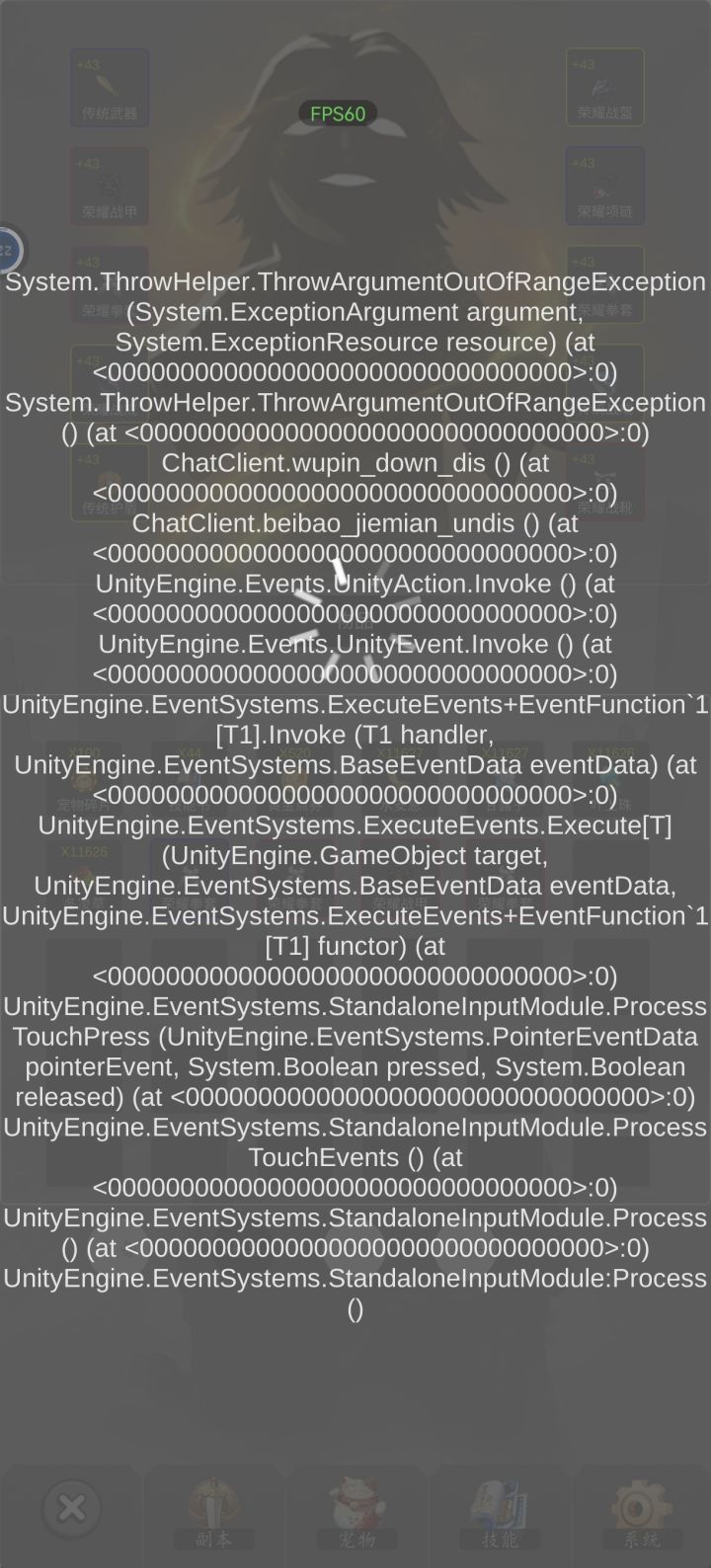 打开背包点物品就这样了。。。退出再进也不行。。。
