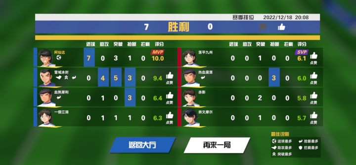 踢了个7:0,还有没有大佬更多进球的😄