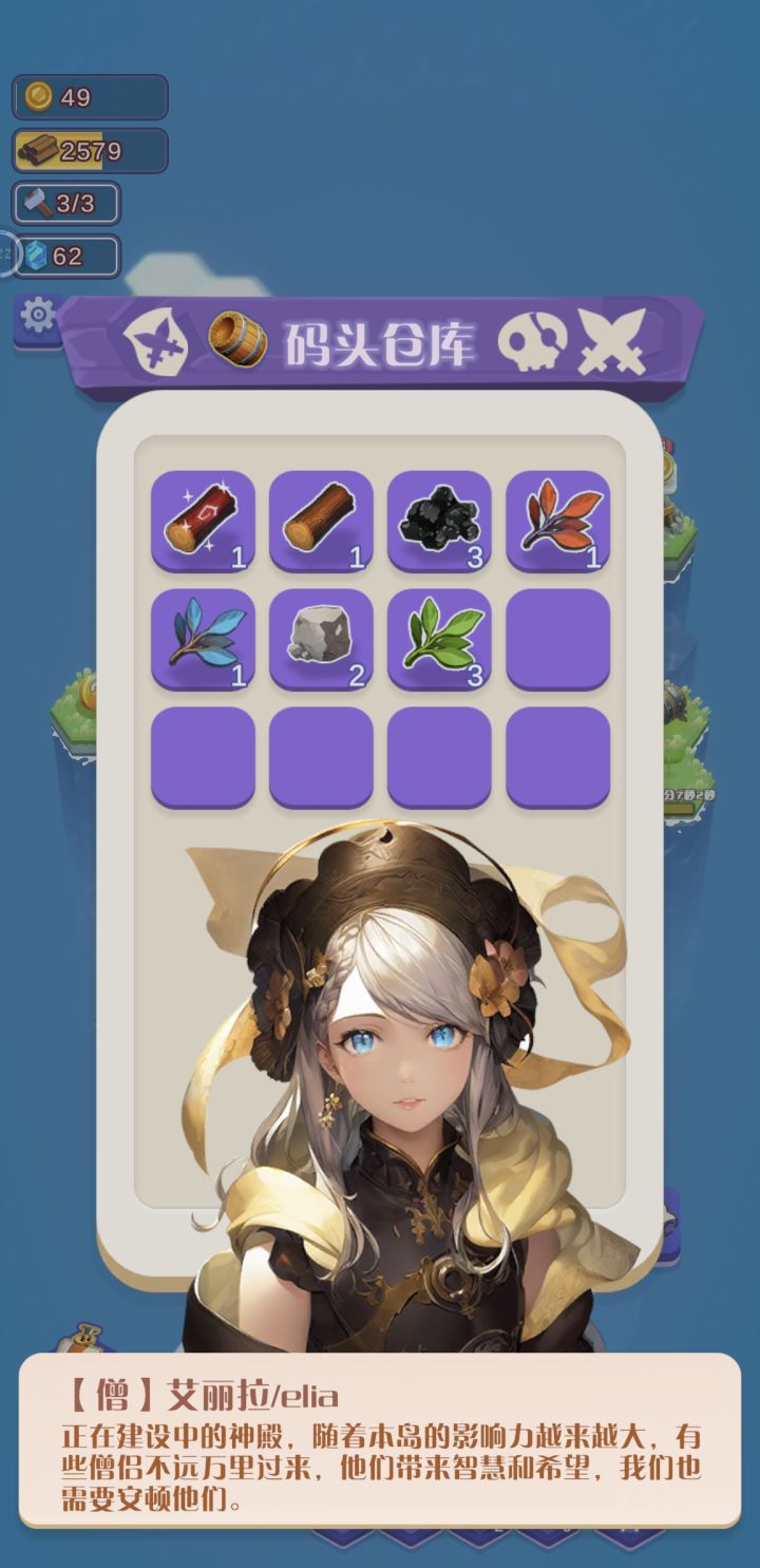 两个问题:一个是点击体验不太好。一方面爆出来的金币红心什么的经常点好几下点不到,另一方面是打开仓库界面点击物品的时候也会同步的点到后面的海岛上,具体表现就是如果点到了商店之类的位置会蹦出来人物立绘,如图所示,很烦人。