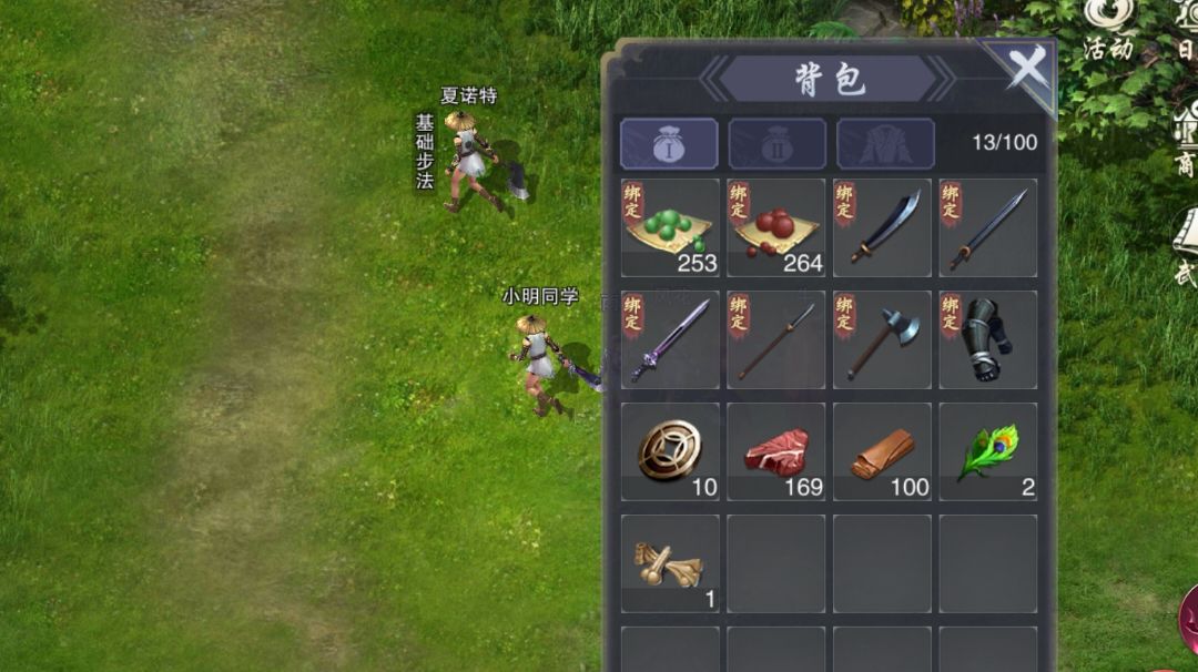 今天的玩家投稿来自依缘,依缘给大家带来的是墨武侠单号玩法。 注意:角色默认走的很慢,进入游戏以后,技能栏第一个是基础步法,开启加速度,点第一次开启,再点一次关闭,屏幕中间正下方有技能图片代表开启中,技能栏第三个是基础强身,增加防御的,开启方法同上(这两个技能需要一直开启,角色死了以后需要重新开启) 1. 进入游戏建议选女角色,女角色比较吃香,进入墨家村以后,按照指引完成新手任务,最后会传送到长城以
