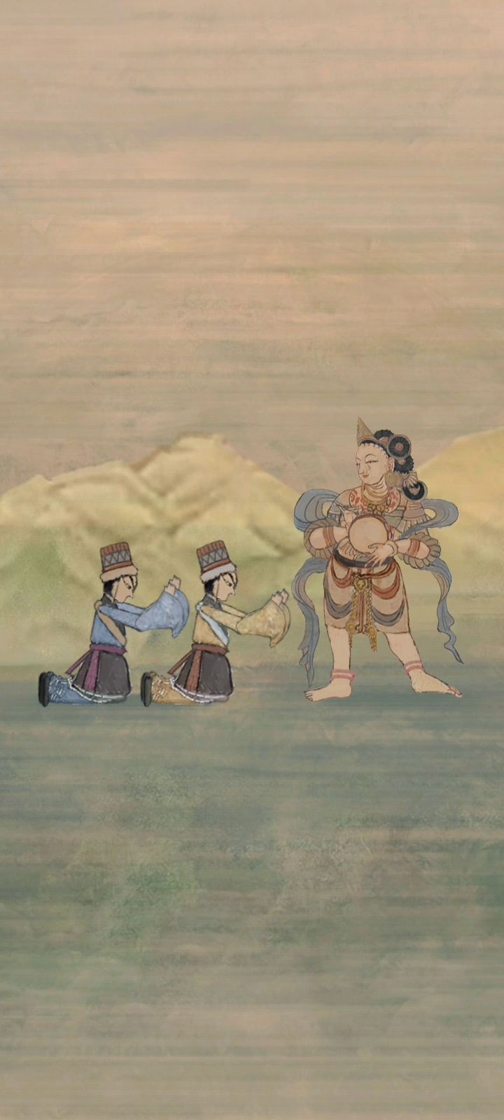 很小很小时候你离开了家 记忆中的阿姐从不说话 那年夜下我还没有长大 白色的花染成天边的霞 我看见看见阿姐对我笑啦 将那破碎的布缝成裙纱 阿姐你看我呀已经穿上它 好看吗 碎布做成的鼓就敲了一下 村口惊起黑鸦隐了月华 和你捉迷藏呀你找得到我吗 经筒绕过了塔重叠的画 我的阿姐你呀快快长大 我要牵着你的手带你回家 我还记得玛尼堆上一位老人家 口中喋喋不休反复一句话 嗡嘛呢嘛呢叭咪哞 嗡嘛呢嘛呢叭咪哞 嗡嘛