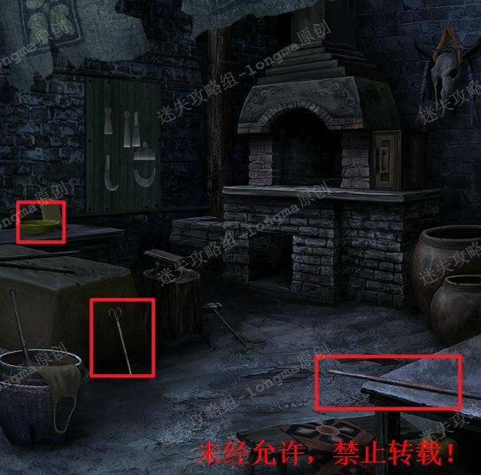 攻略作者:迷失攻略组-longma未经许可,禁止转载,侵权必究!💡更多图文+视频攻略可搜公众号🔎迷失攻略组(也是第一时间放攻略的地方(^U^)ノ | | | | | 第五章 暮鼓鸣1.进入前面的铁匠铺,拾取右边桌子上的【铁棍】,中间的【火钳】,左边桌子黄盆中的【燧石】。1 1.12.查看左边墙壁上的货架,对照周围圆点,摆放刀具(如图2),打开墙壁暗格获得【银锭】。23.返#攻略#游戏推荐