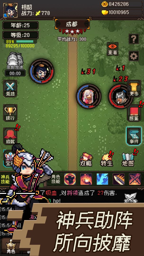 经典像素风三国游戏,虽然叫无双但其实是个挂机游戏(划掉)。