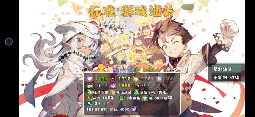 游戏种子:03139880 剑士 ----区域2--- 00:13:08 血量:2158/攻击:28 防御:37/魔防:32 金币:431/等级:6 装备:蝴蝶结/攻防转换器/未装备 未解锁/未解锁/未解锁 钥匙:1/1/0 ----区域3--- 00:29:47 血量:4609/攻击:82 防御:97/魔防:42 金币:1501/等级:11 装备:黄金之风/祖传金剑/吸金手套 未解锁/未解锁/未