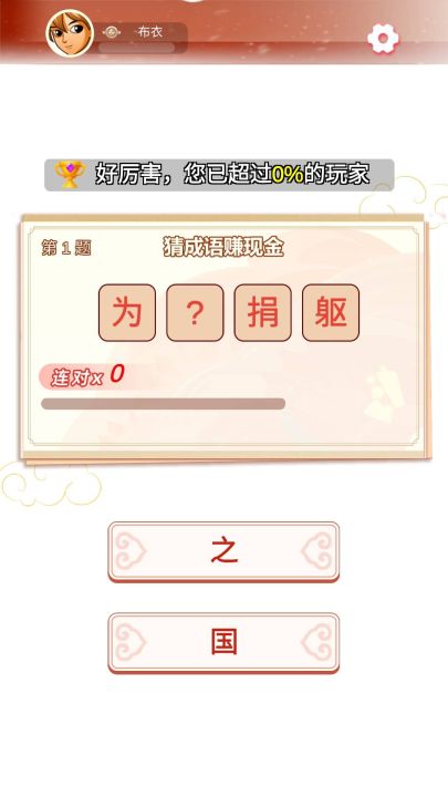 一起猜成语是一款休闲答题游戏,内有丰富的成语词库,涉及广泛,快来试试吧!