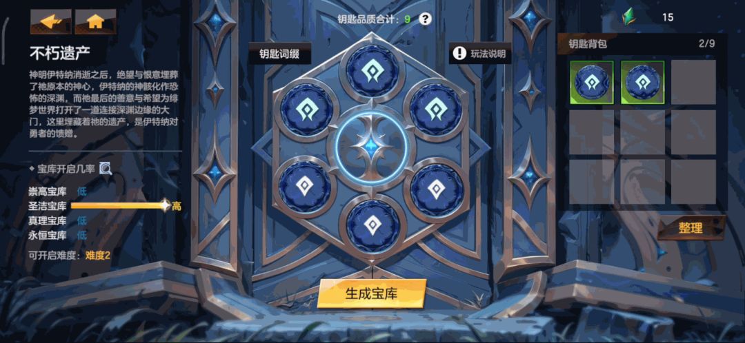 亲爱的冒险者: 策略构筑ARPG手游《绯梦契约》第二赛季正在火热进行当中,非常感谢各位冒险者的喜爱和支持!为了让大家能够畅玩新赛季的秘境玩法,妮娜今天为大家带来「不朽遗产」的玩法介绍~ 【基础介绍——奖励篇】 不朽遗产是“深渊”赛季新增的一个秘境玩法。 以四大宝库为基础,冒险者集齐六把不同类型的宝库钥匙,开启秘境挑战。在不同的宝库取得胜利后,冒险者可获得「深渊」赛季新出的装备重铸道具和特殊