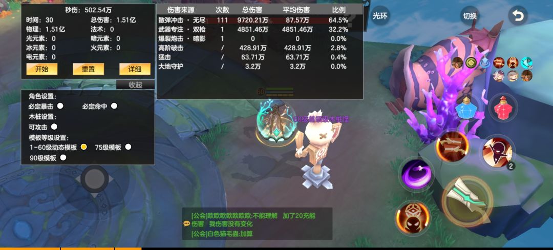 只有40级,先给大家看看伤害。没有7孔,契约点不够,也没有过载。60桩只是因为确实打不动90桩,只有9%-10%左右 觉醒思路是利用重炮7弹消耗+恢复一半,来完成满弹换弹,同时吃当前子弹数和换弹期效果双buff。所以最大子弹数量不能超过炮击消耗数量。由于没有过载,也没满级,所以并不是完全体。另外契约石配比也支持改7孔锯盘。