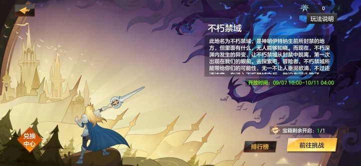 亲爱的冒险者: 此地名为不朽禁域,它是神明伊特纳生前所封禁的地方。这里面有什么,无人能够知晓。近期,因为不朽深渊内发生的异变,让不朽禁域从封禁中脱离出来,它也第一次出现在我们的眼前。 这将是一段没有回头路的征程。冒险者,去战斗吧!不朽禁域中藏匿的宝藏,无一不让人垂涎欲滴。让我们跟随着指挥官·格蕾的脚步,在9月7日那天,一起往不朽禁域进发。一、不朽禁域不朽禁域内有多个首领区域(圣域、星