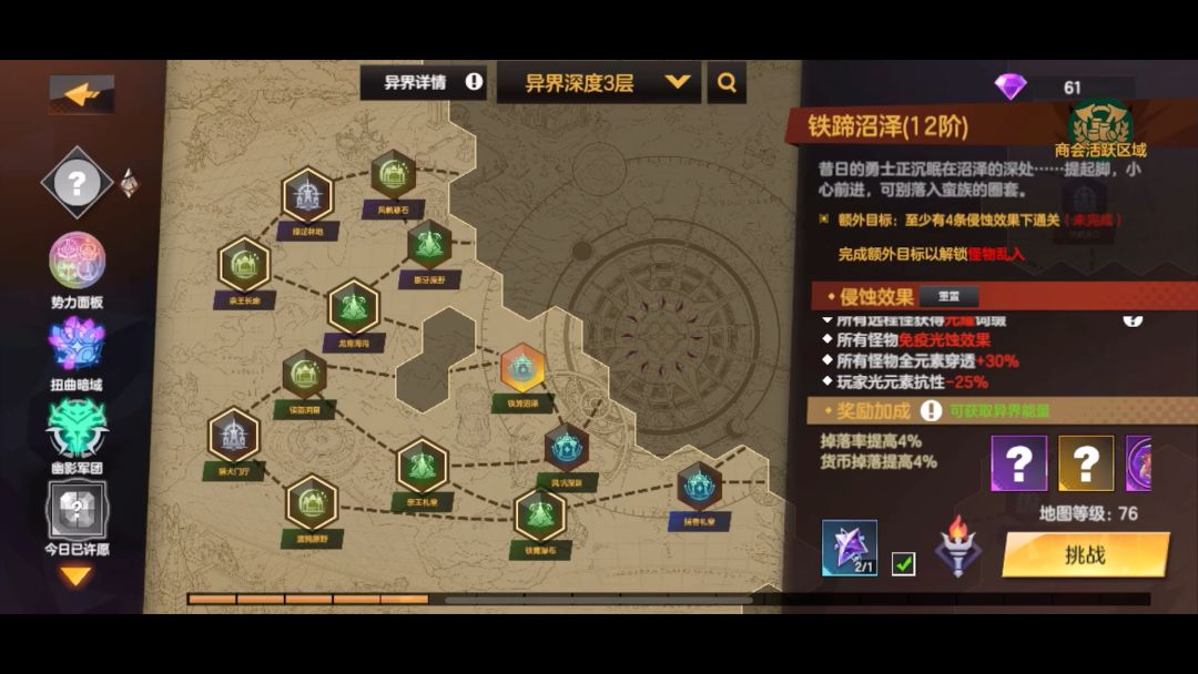 先点起点会有几个格子一闪一闪的,那几个格子里有一个是宝箱位置,探索过去挖掘了!挖到宝箱打了!再点这个宝箱又会有几个格子一闪一闪的,在探索过去,挖掘了,依次类推!左上角的挑战条件如果是行动点不超过70,探索过去的时候别直接挖掘,先识别,不是的话就下一个格子,识别到宝箱了再挖掘(也可以直接分析一下会有一个数字,这个数字代表从你分析的这个点出发再走几个格子就是宝箱,结合起点提示的位置两相交叉基本就能定位