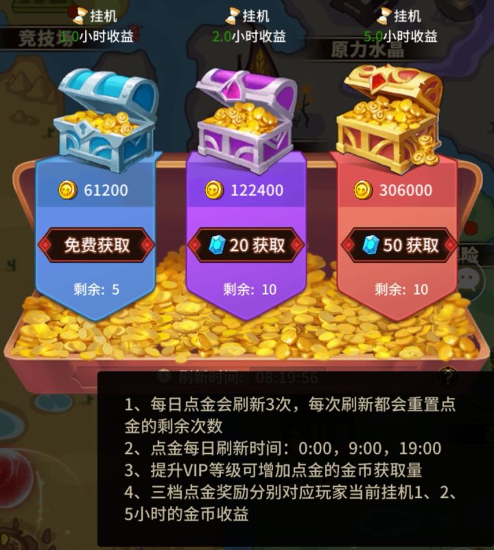 ※以下为个人观点,请玩家谨慎践行该攻略分别针对于零氪及中低氪玩家(只讲重点)注意:开局领的高抽不要留,优先养星级高的,推本推塔越快越好!因为本游戏无论哪天开服,累计消费活动都是周日0点刷新,每期持续6天,所以以周日开服的大区为例,抛开杂七杂八的活动不谈,开服玩家每期累计消费钻石必花如下:1.点金活动(为期6天共需12600钻石)因为英雄升级以及公会技能升级等需要消耗大量金币,所以该活动需