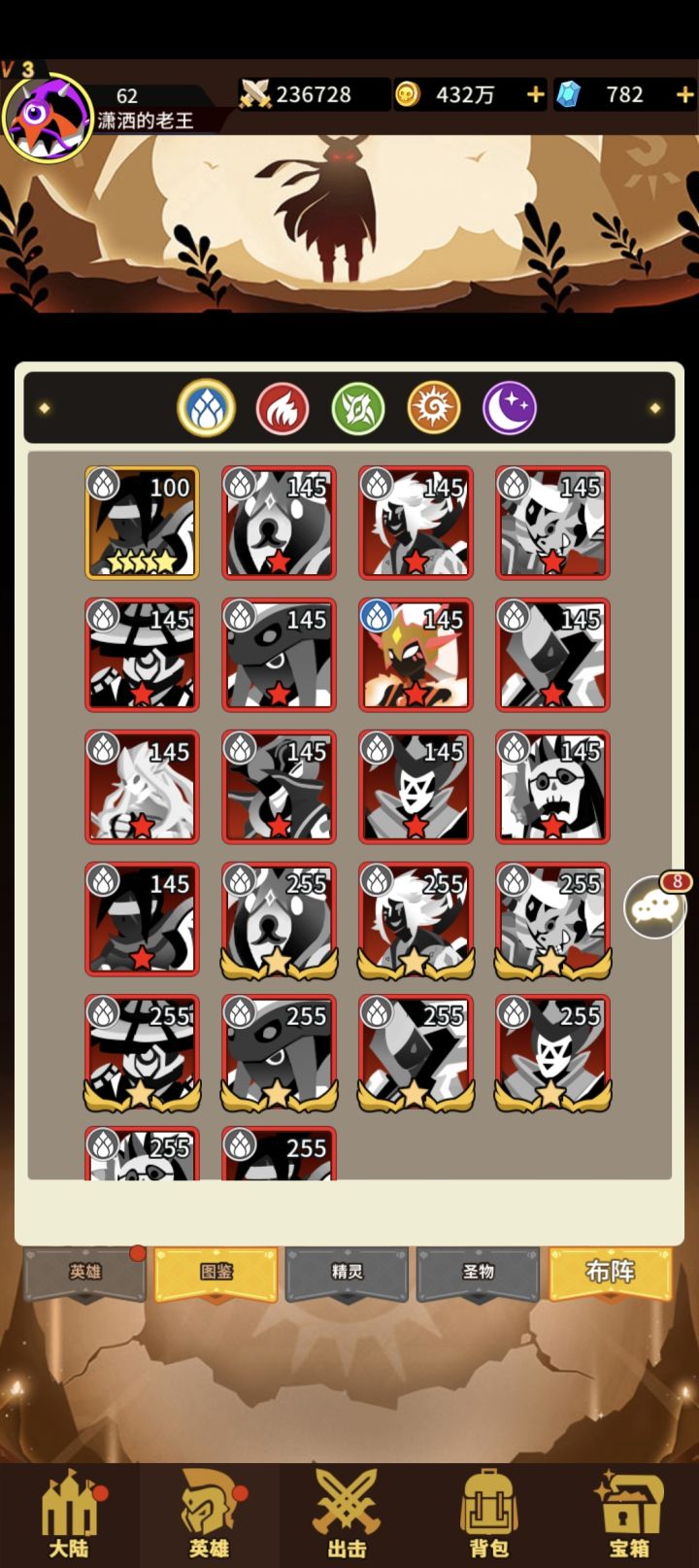 即使《战术大师》是一款换皮游戏,充分详实的了解、分析此款游戏仍旧是我们玩家游戏行为的一种并且 十 分 有 意 义本篇仅以一个玩家的视角,与你分享我们能从“图鉴”中挖掘多少信息。大图镇楼,有需自取本期我们只讲一些宏观的基础概念,关于后期构筑的一些细节问题,我打算放到下一期讲1:游戏内分为水、火、风、光、暗 5个阵营共计45名胎5英雄 其中光、暗均有8名胎5英雄,风、火均有10名胎5英雄,