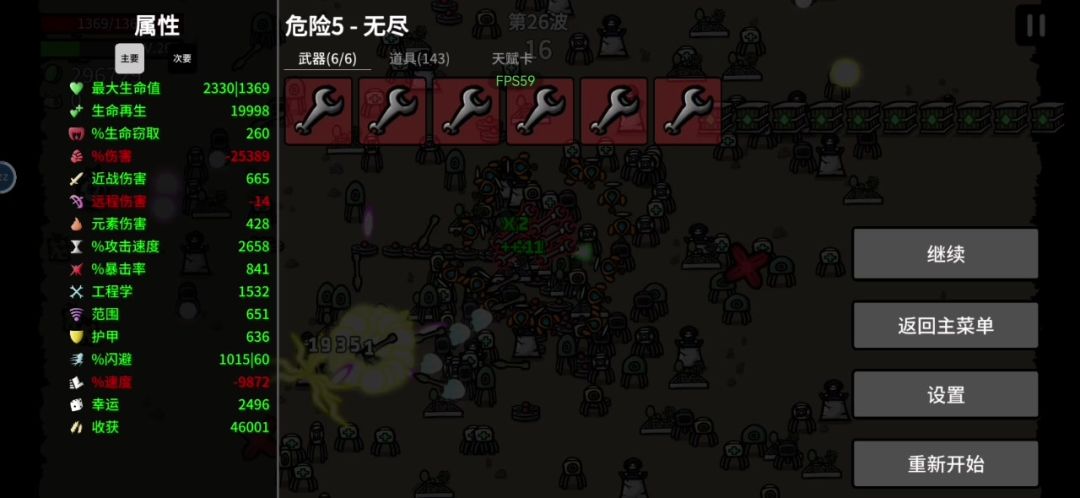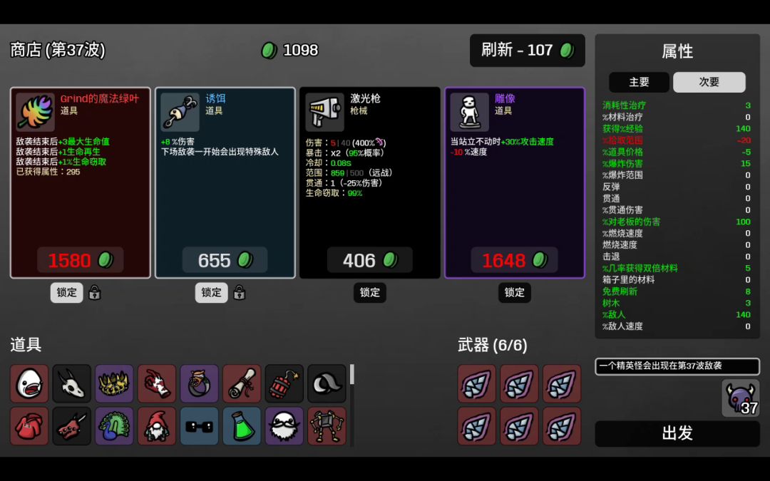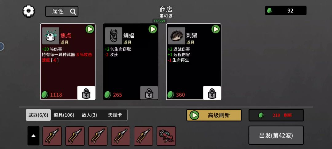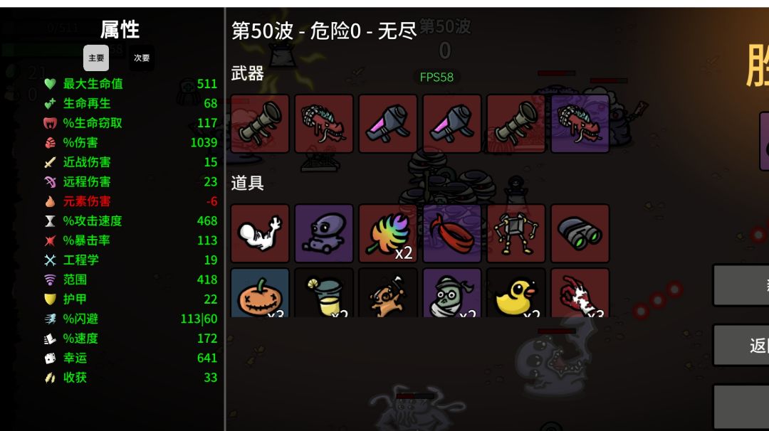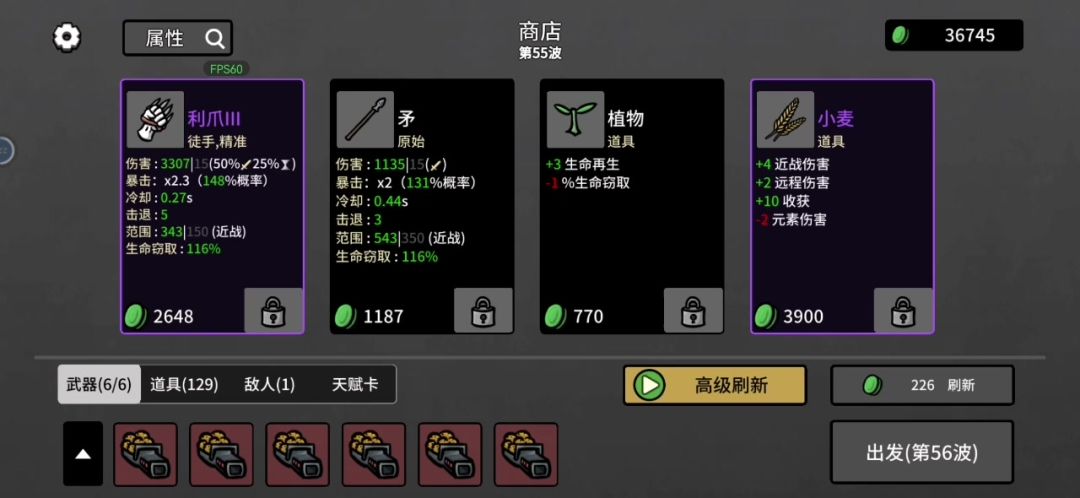 可惜四十关之后收获自动减少,把我卡死了[表情_泪目]止步五十关,天赋没有一点[表情_泪目] 前期用材料小刀把暴击拉上来,四关左右转远程尽量在38关之前拿上毁灭者,要不然直接没了#游戏安利#土豆兄弟
