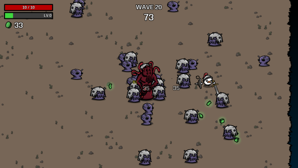 一打了一百多波,总结了一下无尽攻略,很重要的道具:血手,绿叶,水熊虫。武器用土豆发射器,因为道具可以重复拿,所以多个血手和绿叶的加伤远比义警戒指多,然后水熊虫的无敌 然后买道具时尽量不刷,能买全买,买光之后刷新0元,留一武器栏,买了其他武器可以回收,这样可以买更多重要道具