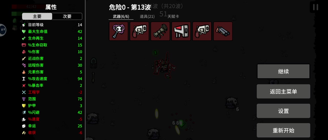 卡的这游戏不咋敢玩了,怕手机先崩了,后面视频没录下来,道具领取回收不了了,返回菜单继续游戏,这个41波次需要重新打一遍。