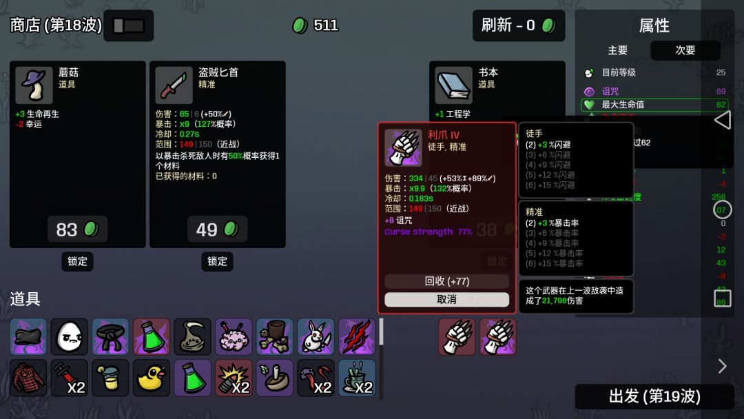 诅咒传奇武器的强度是真逆天,拿一个基本保送通关,在第九波商店找到的,而刚好我有个鱼钩