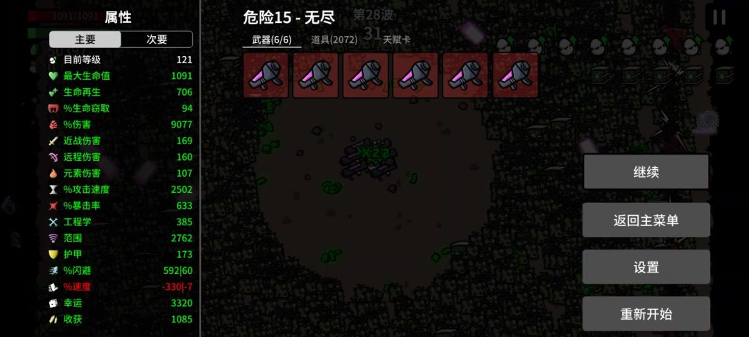 渔夫还是太权威了。 只要能顶住前7波,后面就是纯爽。 但还是复活了不少次。 这个关卡数值摆在这没办法。 主要是第11波是精英怪不是群怪。 而且那个精英怪是在自己周围一圈乱放子弹那个 复活四次才能过这一波,尽力了。 如果运气好点11是群怪就完美了[表情_开心]
