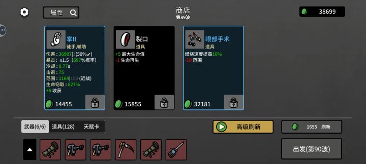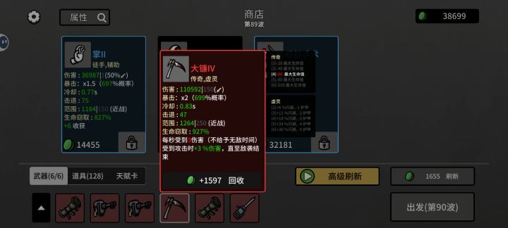 无尽含金量最高的攻略,轻松一百层。字有点多,耐心看完,大有收获。攻略核心:20层之前靠收获天赋卡+道具王冠[9%的收获加成]+储钱罐囤材料,然后趁商店物价还没涨起来之前大量买进道具。配置:一套全【收获】天赋卡,建议升一下等级。我的配置是3张成长的天赋卡【一共+18%】,然后剩下的都是普通收获卡。具体操作:1.开局选【辅助】武器,比如[花园剪刀][掌]2.前几波结束后,升级优先选[收获