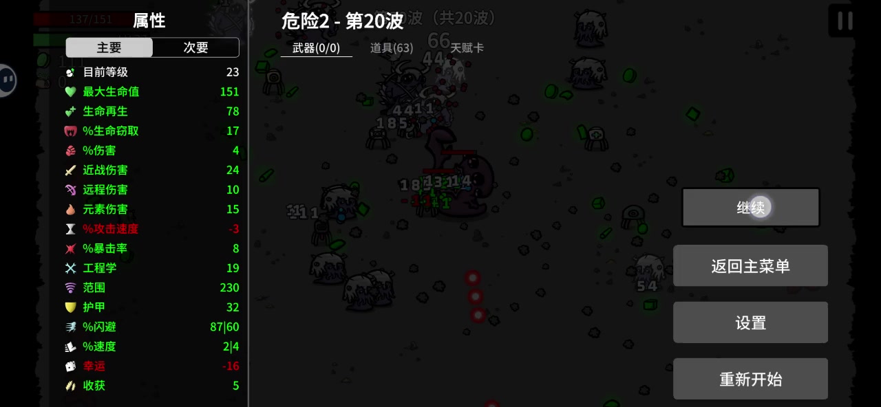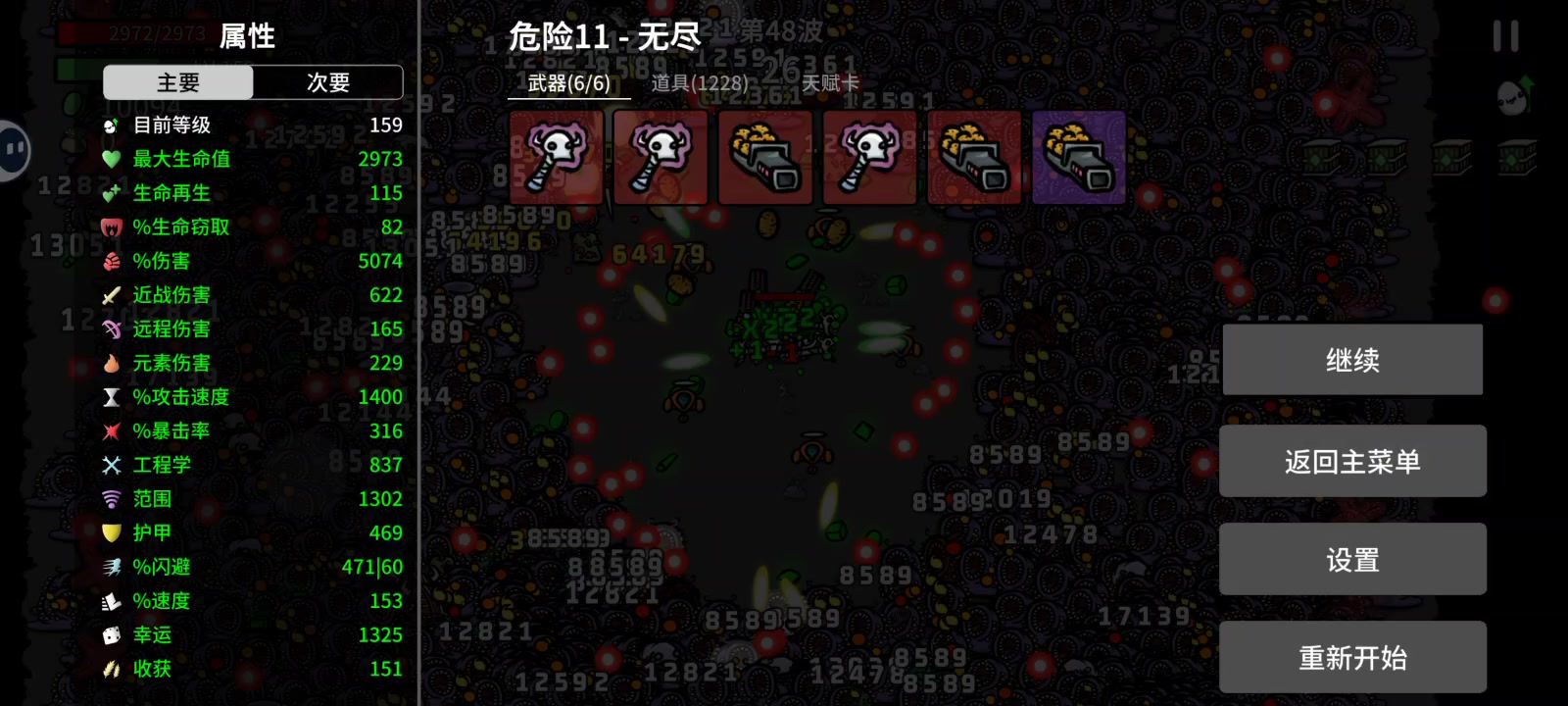 游戏情景:危险9 渔夫 天赋卡(几张卡综合收获12%) 看广告如图所示,无尽打到危险9第45波,血量297万,土豆发射器的伤害6千多万,王者之剑的伤害6亿多。1. 核心道具就是护垫,最大生命值基本是由护垫来提供的。需要注意的是,当前情景下最大生命值的计算公式是根据护垫的机制得到:最大生命值=右上角材料数量÷80。所以,当我们把材料拿去买完东西之后,最大生命值也会减少,因而维持生命值的办法就是少