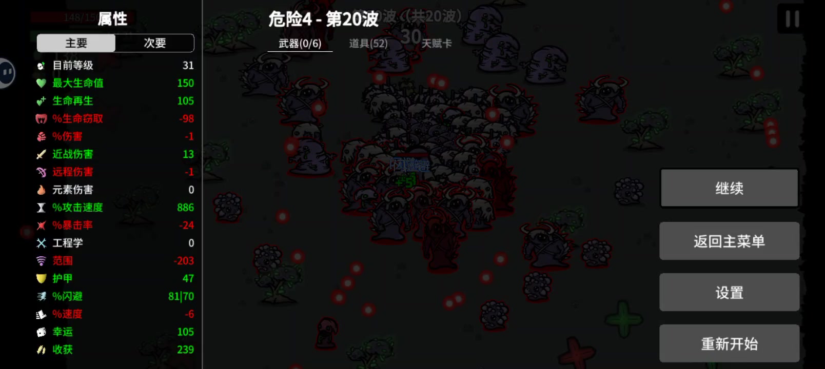 如图和平主义者把闪避拉满,来个闪避回血。越到后期🎄越多越死不了
