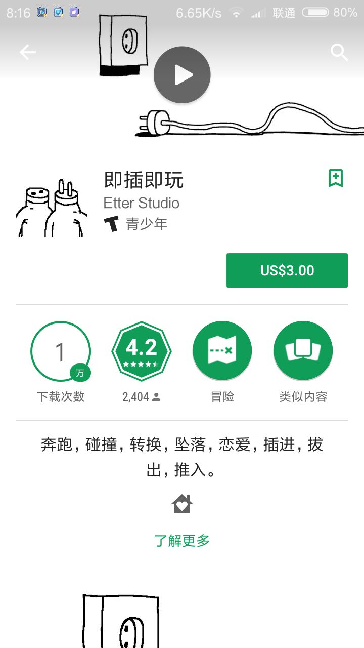 搬运来的开头的两根手指代表创造亚当。显然不是人类长度的两根手指缓缓戳向对方,代表着人类的诞生。然而之后却意外地戳在了一起,左手指指甲掉落,代表了变故的发生。印证了这一定取自米开朗基罗的《创造亚当》的同时,也隐晦地表达了游戏的主题。指甲是手指最漂亮的地方,光滑细长,坚硬柔韧。如果将手指比作亚当,那么指甲就是他最美妙的生殖器官。上帝赋予了亚当生命,却也不小心赋予了亚当智慧。在被赶出伊甸园之后,无尽的奔跑中的寂寞让他发疯。可以爱却无法爱的困境,空余一个插头却难以找到插座。最终第一个插座人倒在了寻找爱情的黑暗之中。开门,第二个插座人到来。耶稣的12门徒代表了结束与背叛。而第二个人所在也是如此。而他***这种处境,萌生背叛上帝决心之时决定改变自己……将自己变成女性。亦或是变成了同性恋之中的受。之后他遇到了一个女性,心中仅存的希望让他激动万分。之后就有了那段对白:i love u.i dont love u.hug meim not sureit hurtsim leaving.the bad end在这说不清的爱情世界里残忍拒绝的的同时,却有人能够幸福的恋爱,正如两条不小心交错在一起的线。他在旁边无所适从。那就胡乱的爱吧,毅然决然地插入了其中一人的身体之中。难以忍受的孤独黑暗的等待造就畸形的同性之恋。上帝创造了亚当,赋予亚当美好的爱的能力的同时,却没有赋予亚当被爱的必然。最终亚当将上帝之手指折断,插入自己的欲望之中。至此世上纯洁的爱情陷入亚当们畸形之恋的泥沼之中,被束缚被毁灭,变成了那噬肉饮血烂骨腐心的性欲。正如游戏最后表现的,打开开关手指会硬,关闭开关手指会软。上帝交付给人类最美好的器官变成了即插即用获取快乐的器官。到此,也正式回归这个游戏标题——《plug&play》。最后总结作者如此隐晦地表达出对这个世上人与人之间现状的强烈不满,与其说是一个游戏,更不如说是一个视觉冲击强大的艺术作品。如此鲜明刺眼的人物设定,荒诞却现实存在的丑恶故事。折射出世界上早已被性欲绑架的爱情,包括同性之间。