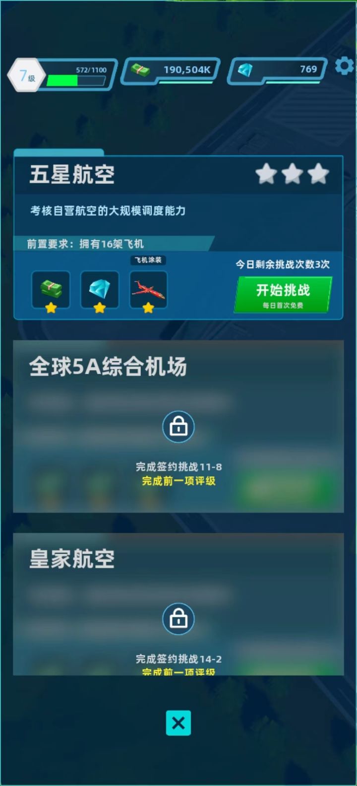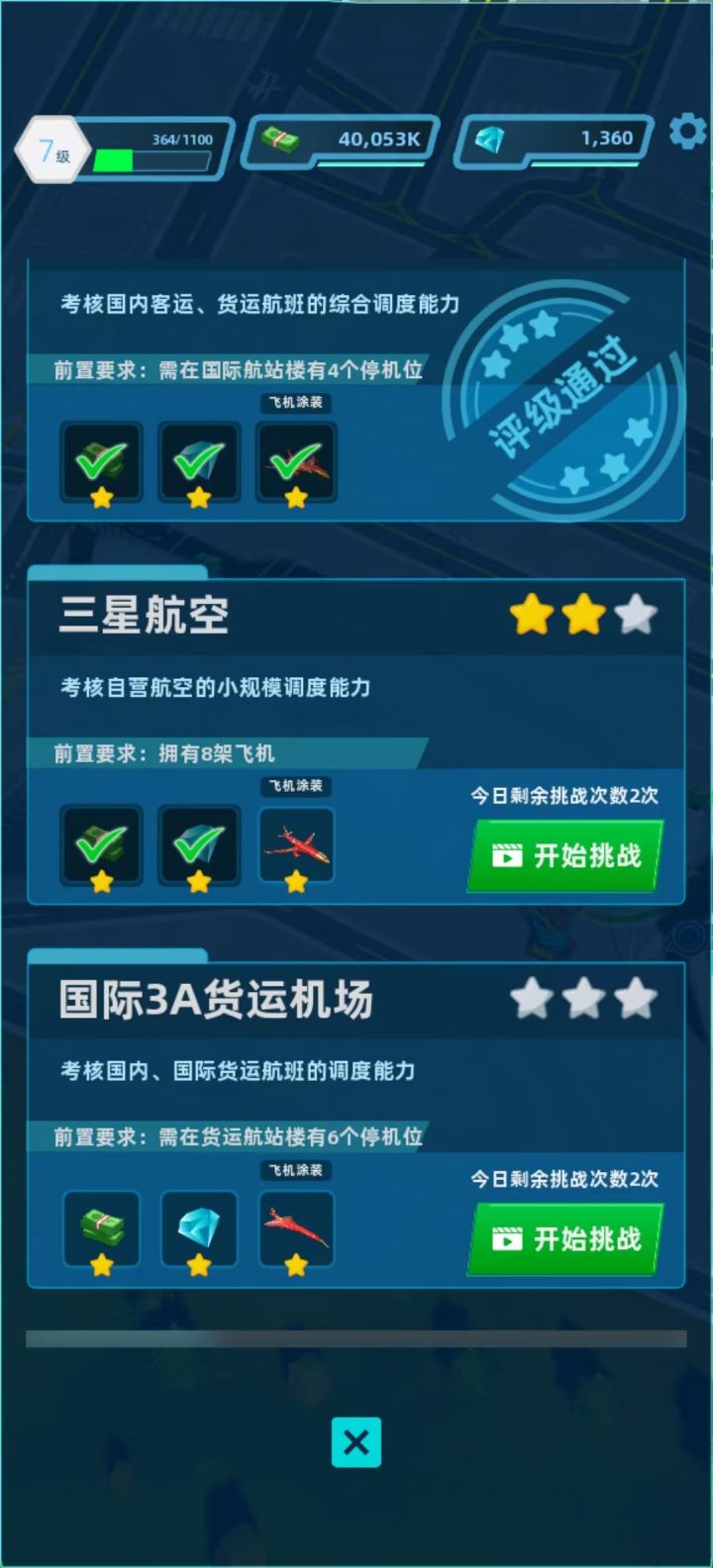 老板们好~多日不见,老板们有没有想念小助理呢?嘿嘿,这些日子小助理都看在眼里,是老板们用自己出色的能力,将最初的小机库发展到了现在这样厉害。当满足一定条件后,老板们就可以参与联盟评级的考核,获取联盟认证和各种奖励啦~!事不宜迟,老板们快来看看怎么通过联盟评级中五星航空的考验吧!“五星航空”主要考验自营航空的大规模调度能力,当机场拥有16架飞机的时候,老板们就可以来挑战考核啦。老板们不用担心,对