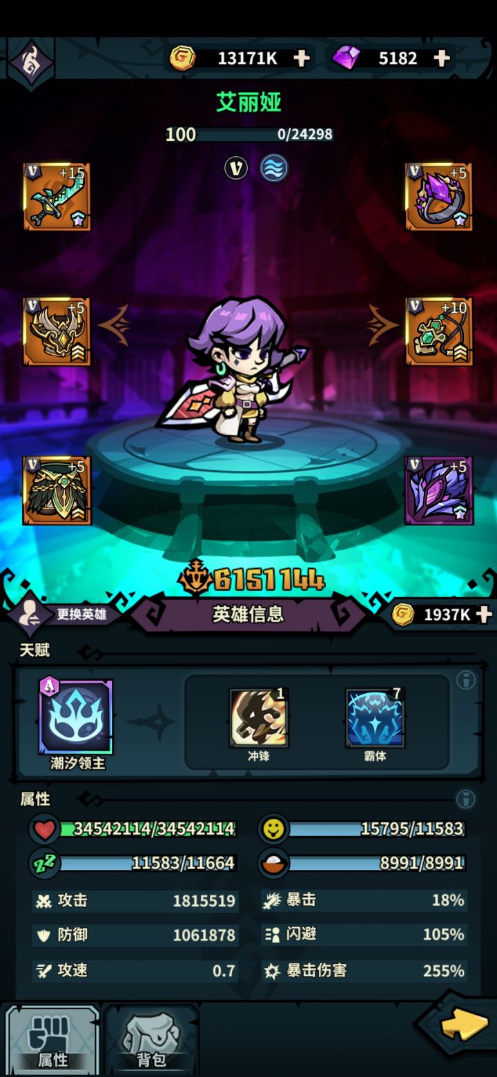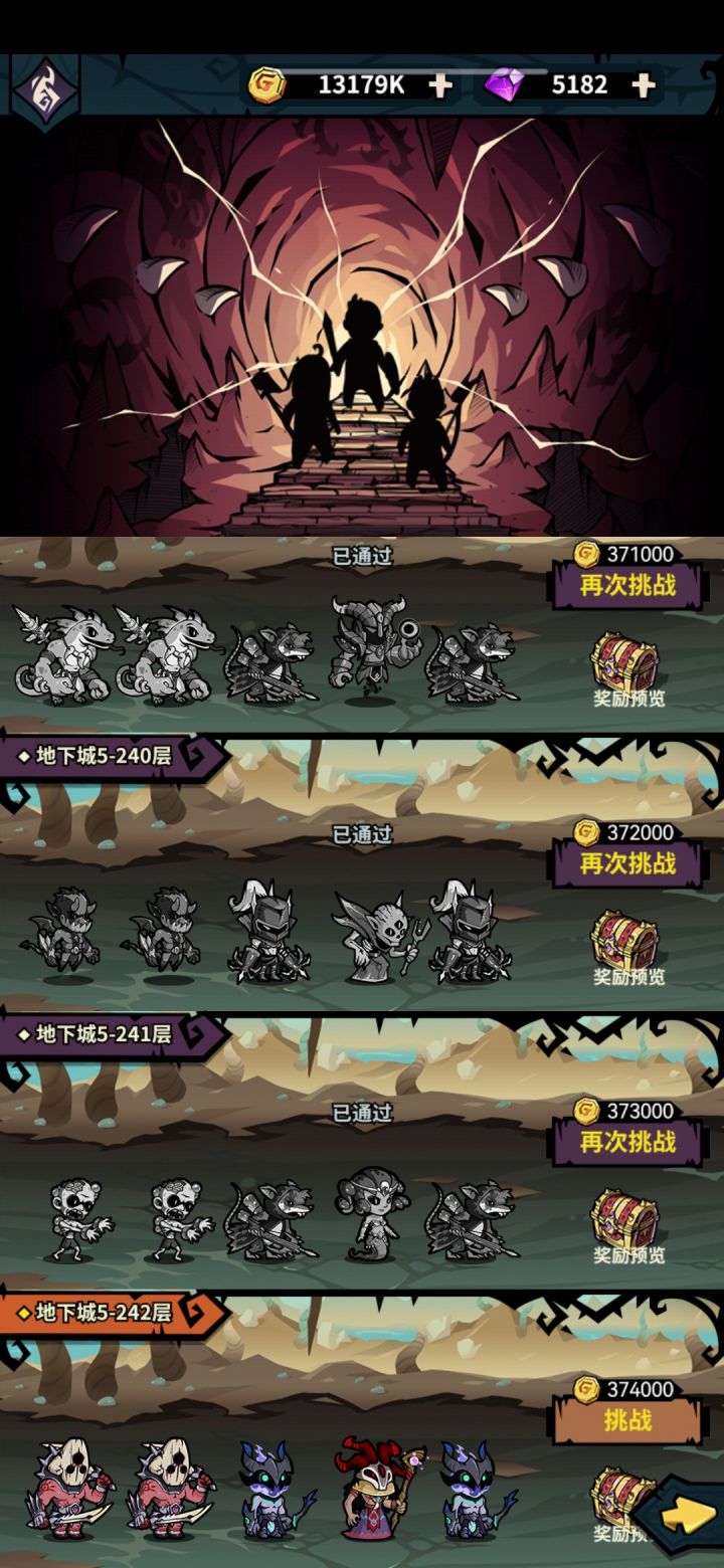 地下城之前说错了,总共只有242层,最后一层难度比较大。首先霸体那个人得叠闪避,我6件闪避装叠到105,其次还需要带一个有封印技能的角色,放下面了,对面上下的两个怪伤害极高,血也贼厚,所以得先封一个。站位也在下面了,只需要注意霸体在2号位,封印在后排。当然,你两主C输出得高。别问为啥都是彩的,打竞技场换箱子,还有就是抽出来的