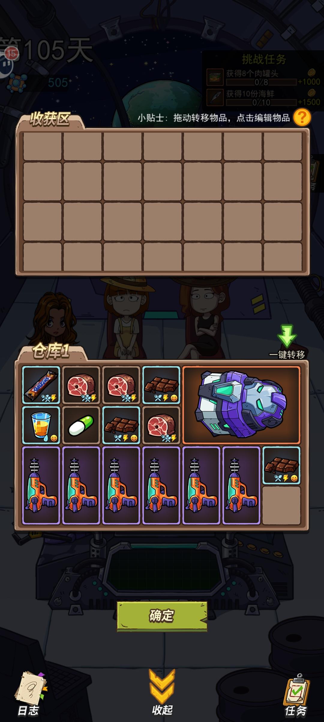 角色:帕梅拉 查克 蛋哥好用 还有一个随便选 没多大问题 没刷到这三个也可以随便选策略: 遇见第一个星球上去探索刷资源 库库刷就行或者每个星球都去刷个几千然后去下一个星球 加速行驶 一定得做两个武器 一个探索 一个家里用 我是两个电击枪! 电击枪真的很好用 最高级的武器太占位置 可以但没必要 至少保两个角色 一个在家一个出门 特点: 不会渴 不会冷 只需要做罐头 水可以全部分解 也可以留点加心