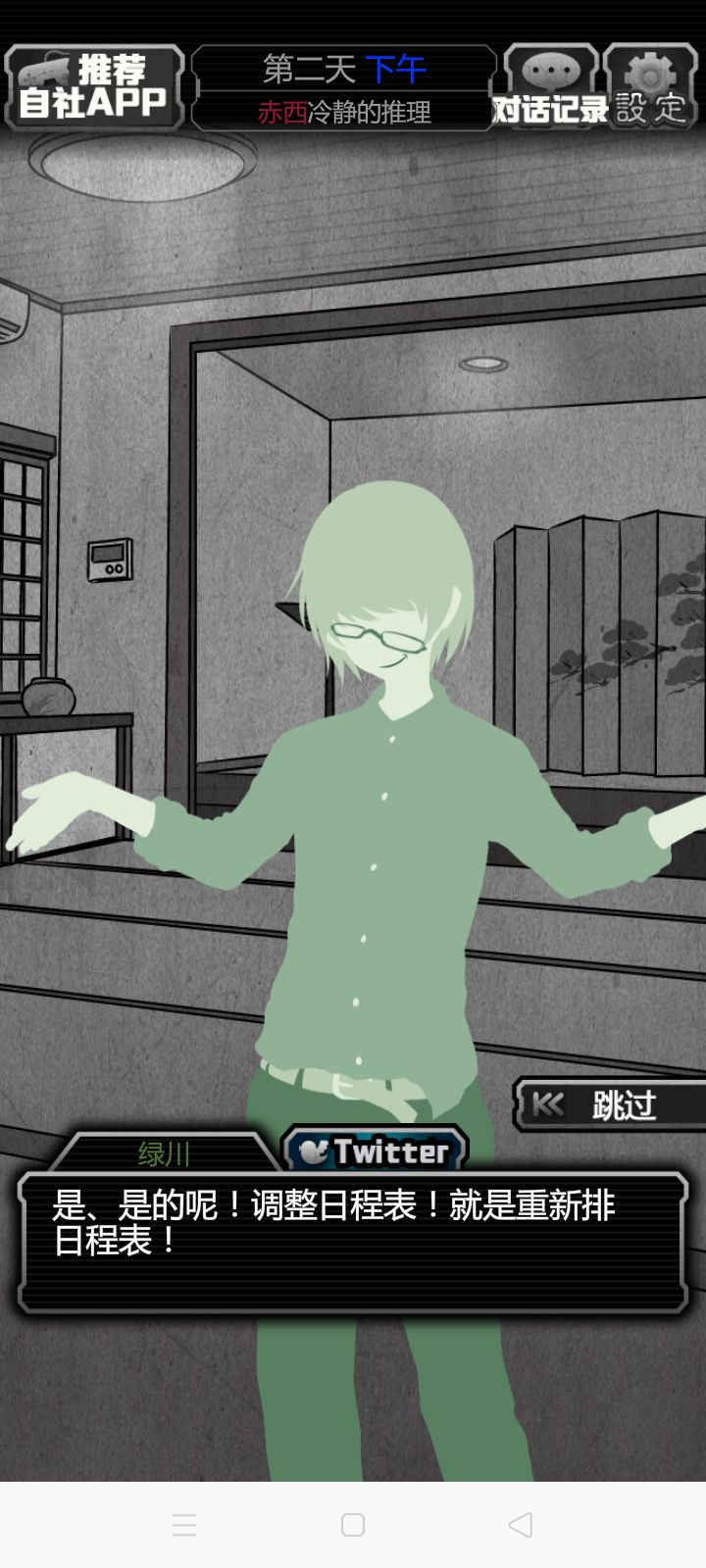 达成真结局条件:通关一次普通结局后出现新路线所有会议的成功率都要到100%(即无错)在最后一关集齐揭穿黑幕真面目的三个证据。本攻略为了防止剧透,删减吊所有相关物品名(和进程)只留干货PS:顺序并不一定非要按照我写的来序章点击石头点击望远镜选项选1 你碰到他的手了第一天上午 VS绿川搜查时间(最好和每个人都先对话下,能看到人物基本介绍)1.去竹之间和绿川对话2.去小卖铺点