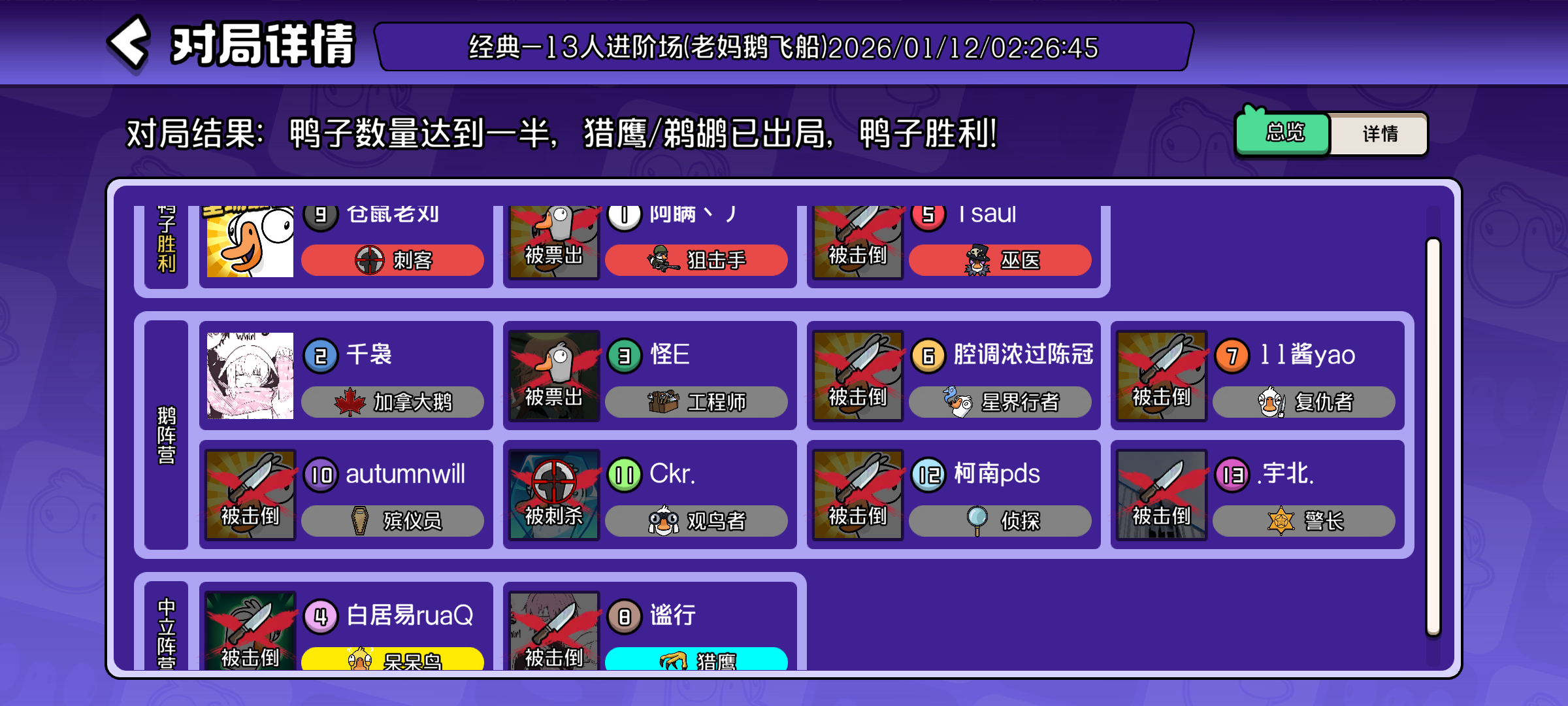 咱一个鸭单挑7好人和1呆呆,加拿大活到了最后,不得不说,警长身份真不错,就是感觉玩狼人杀一样,累死了,真的极限了