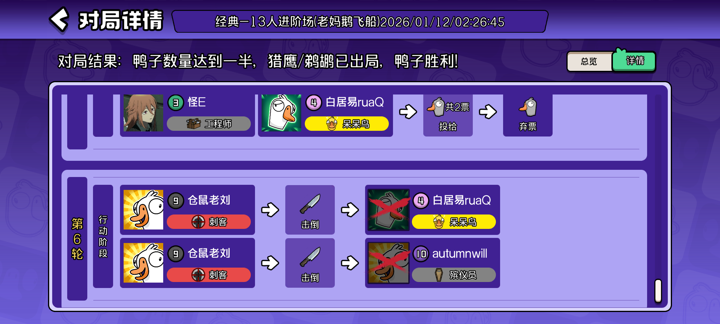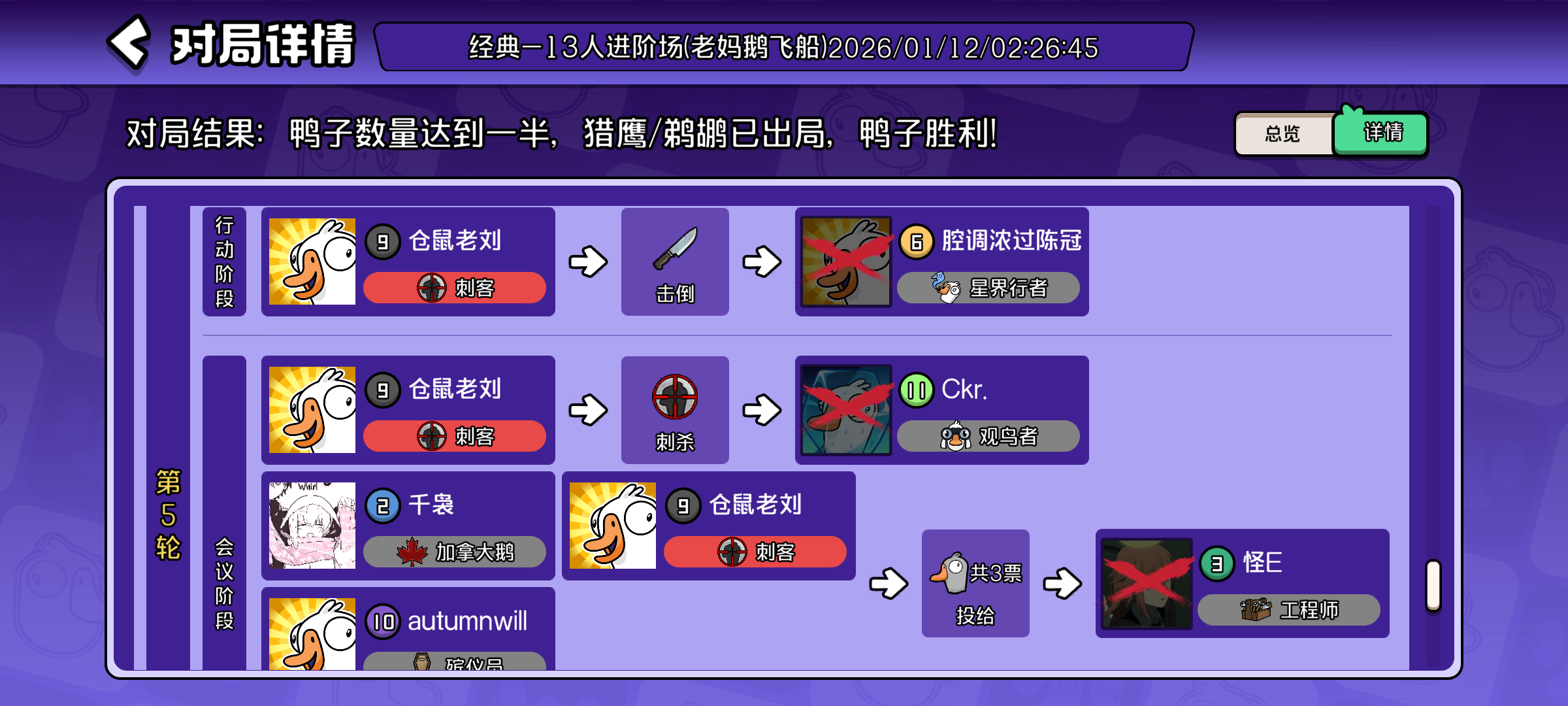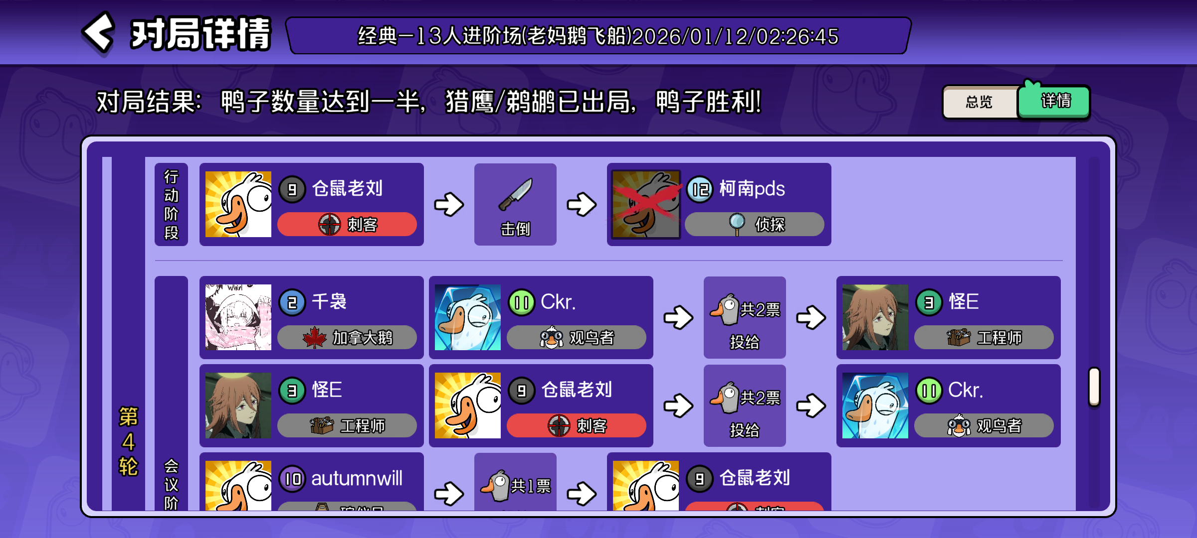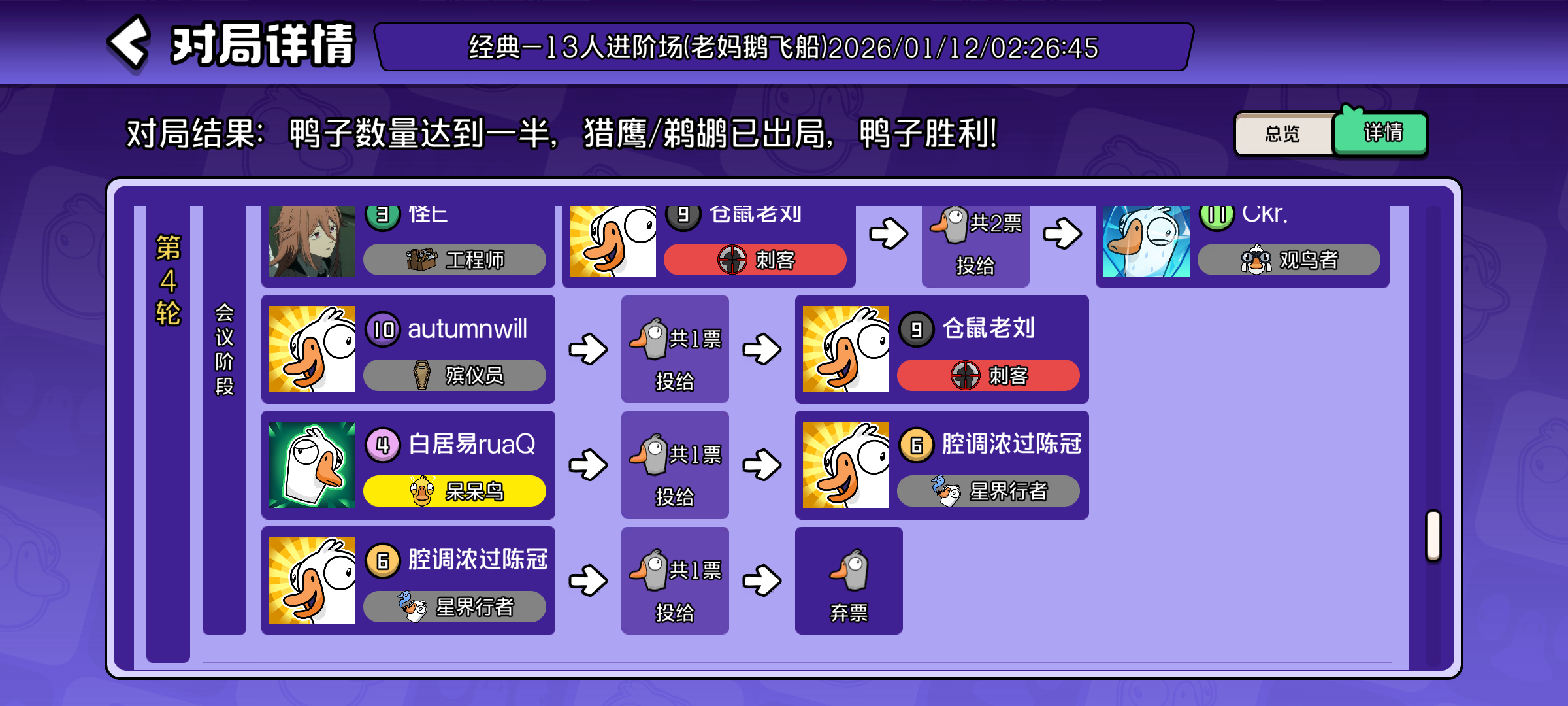 昨天下午玩到凌晨 困到不行去睡觉了 很难遇到一起玩的 要么现实认识要么玩完就退 即使一起玩 玩完不复盘 盘逻辑的游戏就像剧本杀得去复盘 去总结一下的感觉 根本没有 即使认识在一个房间也是一局局不停的开始 没有任何缓冲的时间 节奏又快又懵 感觉不到乐趣 我用了一晚上玩到最后换来的是做噩梦 梦里都在混乱的不清不楚的 不知道有多少角色 也不知道这些角色该怎么去盘怎么去理 而一晚上升级太快 就会导致你很想
