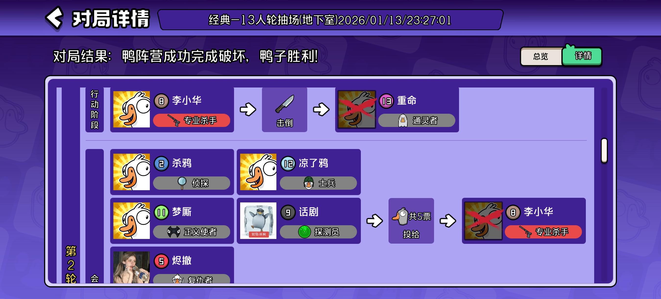 本来只要做四五个任务就赢了,然后那个鸭子还是我用技能看人数找出来的,本来形势大好,结果警长小脑在我做任务的时候刀了,我说他刀我干嘛,就差两三个任务就赢了,然后还是一个女的,觉得自己老委屈了,气的我就开骂了,结果就一直那咋了,然后退了就很无语我士兵五个任务中间开了四次会,直接气的我红温,本来还压着气不想说,结果布谷靠开会直接把蛋下满了,然后任务也没一半进度最后一个才是真的红温,本来以为士兵那一把
