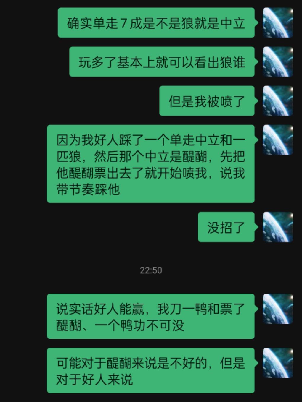 昨天下午玩到凌晨 困到不行去睡觉了 很难遇到一起玩的 要么现实认识要么玩完就退 即使一起玩 玩完不复盘 盘逻辑的游戏就像剧本杀得去复盘 去总结一下的感觉 根本没有 即使认识在一个房间也是一局局不停的开始 没有任何缓冲的时间 节奏又快又懵 感觉不到乐趣 我用了一晚上玩到最后换来的是做噩梦 梦里都在混乱的不清不楚的 不知道有多少角色 也不知道这些角色该怎么去盘怎么去理 而一晚上升级太快 就会导致你很想