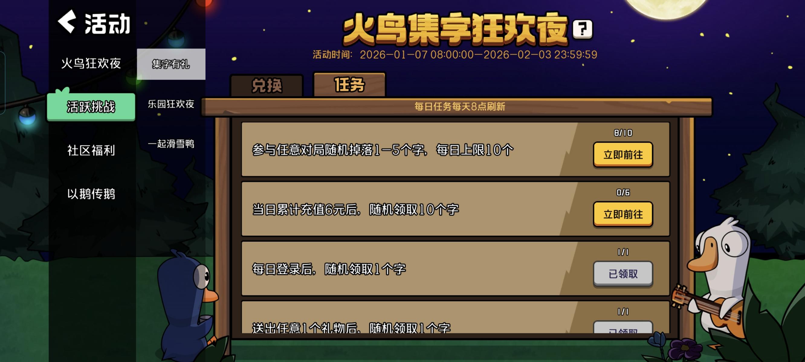 各位幸运鹅!开服以来的“排队福利”列车,今天到达终点站啦!最后一份【终极心意礼包】已经在发送的路上,我们将继续发放皮肤自选礼包!福利加量,心意不变!明天请上线领取!从排队的焦灼,到扩容成功的欣喜,再到这几天的一起狂欢……这段特别的“开服记忆”,感谢你们一直在。请收好这份心意,也请期待我们后续带来的全新活动与版本内容!服务器始终稳定,快乐永远在线。我们游戏里见!Gagaga~下次更新见