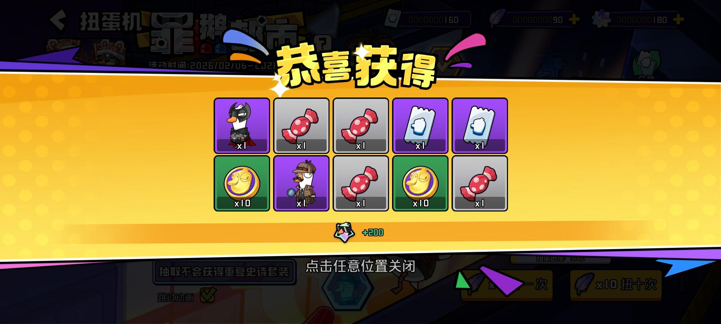 亲爱的幸运鹅:服务器将于2月6日7:00-11:00停服维护。具体维护时间视实际情况提前或顺延,请大家提前做好下线准备。【全新原创角色】国服限时角色——锦鸡上线!发红包!发红包!发红包!我要发红包!让我赢!【赛季系统上线】• S1赛季-锦羽迎春开启• 全新传说及史诗卡池:新年穿新衣,马年要来到~• S1赛季通行证:谁的头上长了花?什么花?烟花!• 推理等级系统:身份全靠猜,逻辑全靠