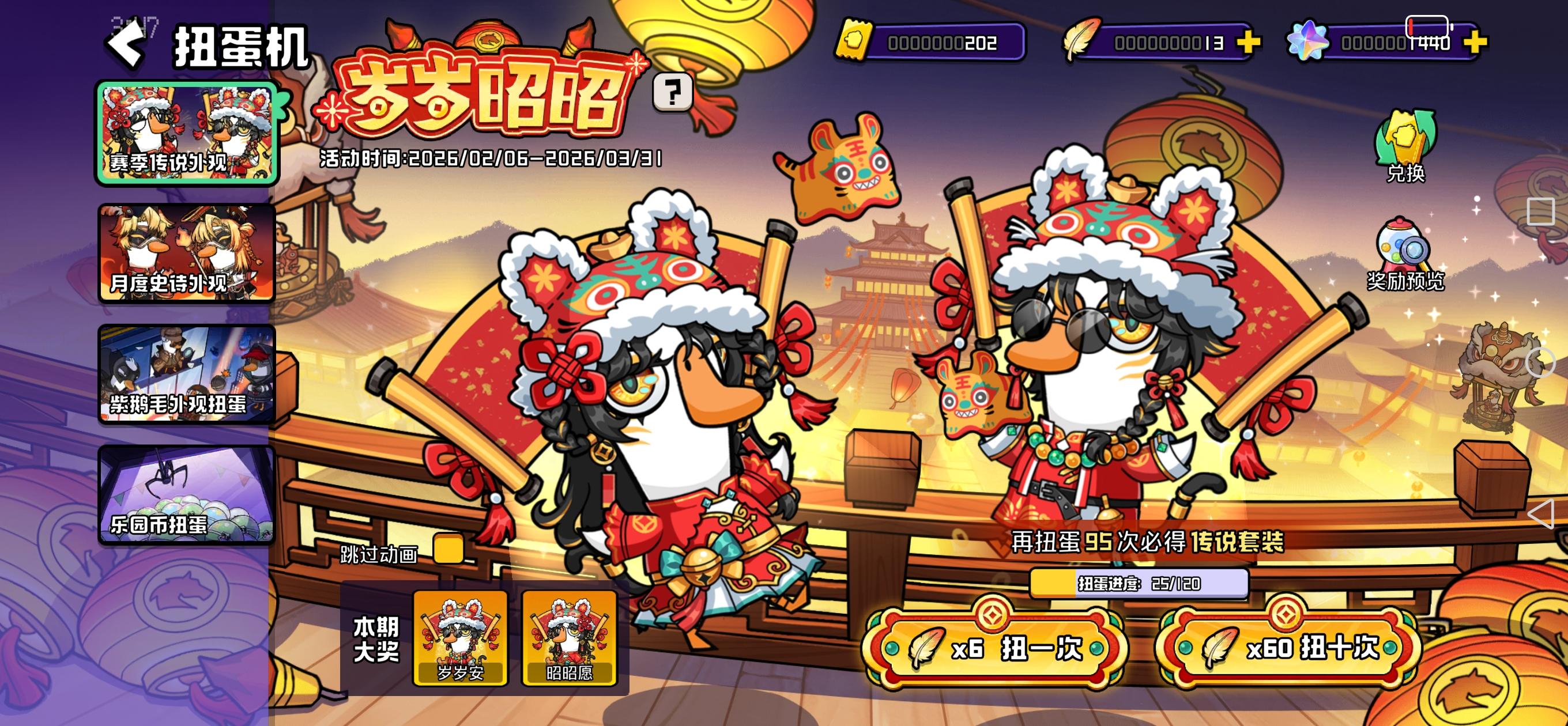 是红包主理人、是爆竹燃放者、是年夜饭掌勺的、是福字艺术家、是资深挂灯笼的、是春联书法家...更是国服首个原创角色【锦鸡】!新春将至,锦鸡带着红包,陪幸运鹅们来财来财~鹅鸭杀红包第二弹同步上新!官方专属动态红包,数量有限,先到先得兑换码:【NU_hjO6O3xcI4T】【有奖活动】锦羽迎春 · 新春主城游园打卡幸运鹅们,欢迎来到新春主城~S1赛季,官方鹅在主城装修了很多春节元素,原鹈鹕拍