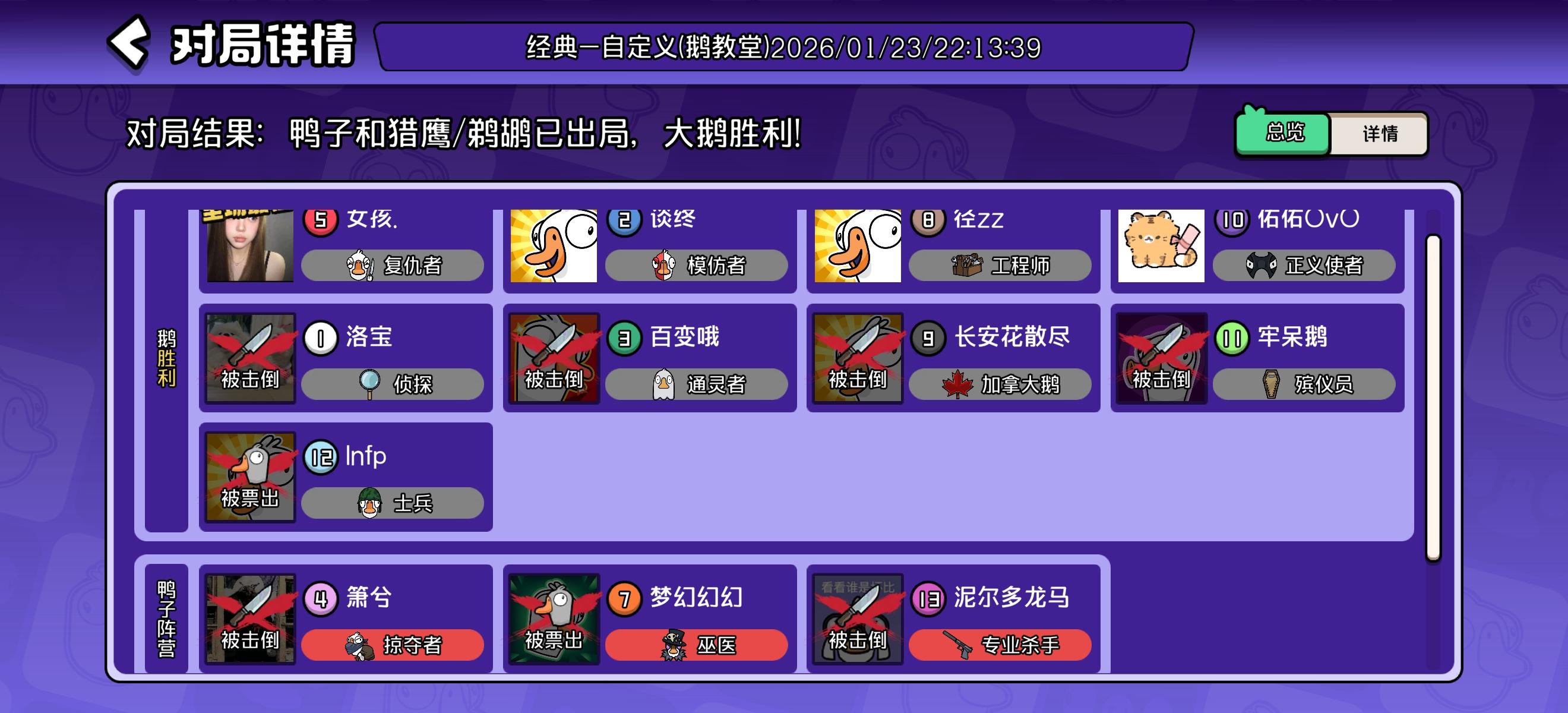 第一天玩,依旧新手局,第一次当鸭子直接杀完人跑掉没多久又跑回来报警,被观鸟指控我杀了人,然后我就直接承认了,第二次直接只敢搞破坏不敢杀人,是不是太怂了,每次都是匹配到会杀的鸭子同伴自己就可以搞搞破坏躺赢,都不敢杀人只能输掉比赛,真的不会撒谎#鹅鸭杀