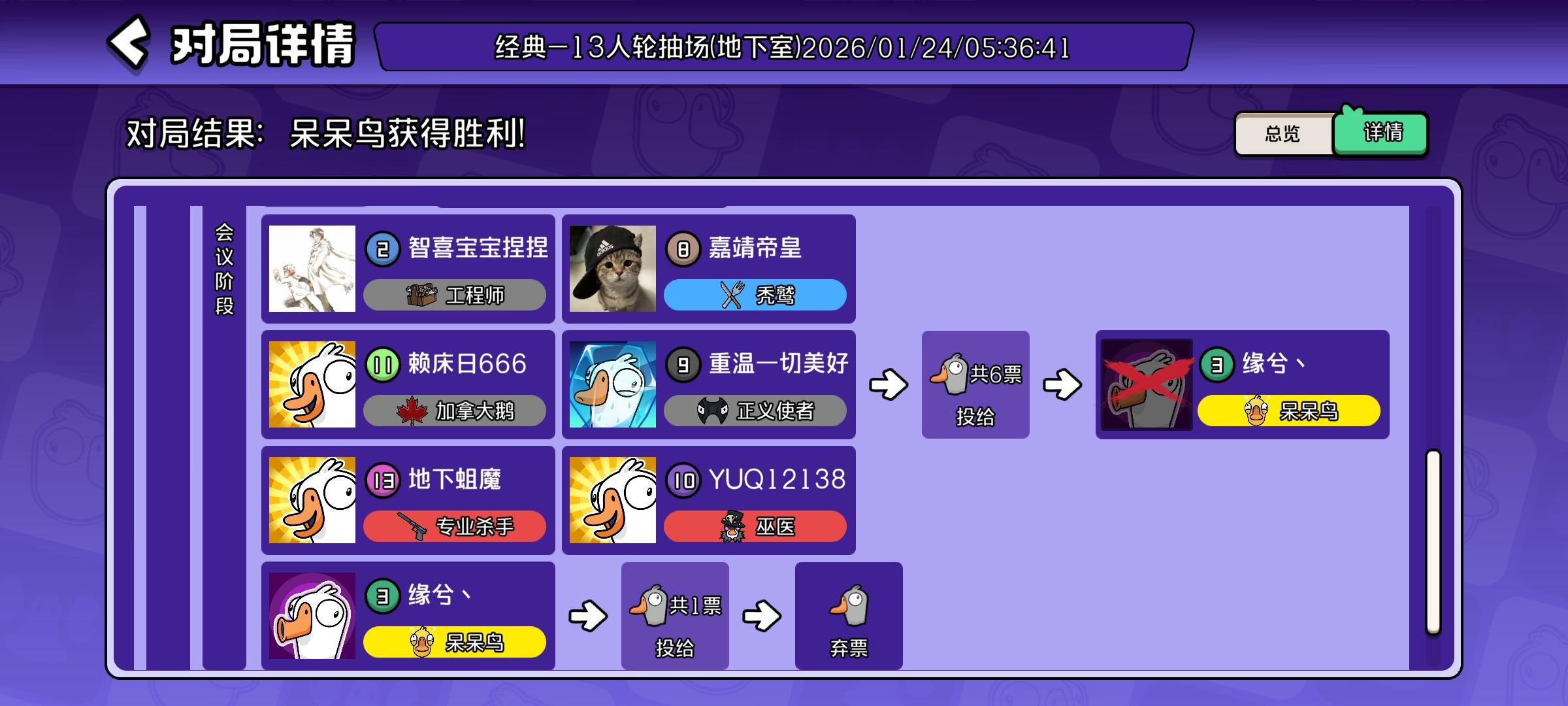 第一天玩,依旧新手局,第一次当鸭子直接杀完人跑掉没多久又跑回来报警,被观鸟指控我杀了人,然后我就直接承认了,第二次直接只敢搞破坏不敢杀人,是不是太怂了,每次都是匹配到会杀的鸭子同伴自己就可以搞搞破坏躺赢,都不敢杀人只能输掉比赛,真的不会撒谎#鹅鸭杀
