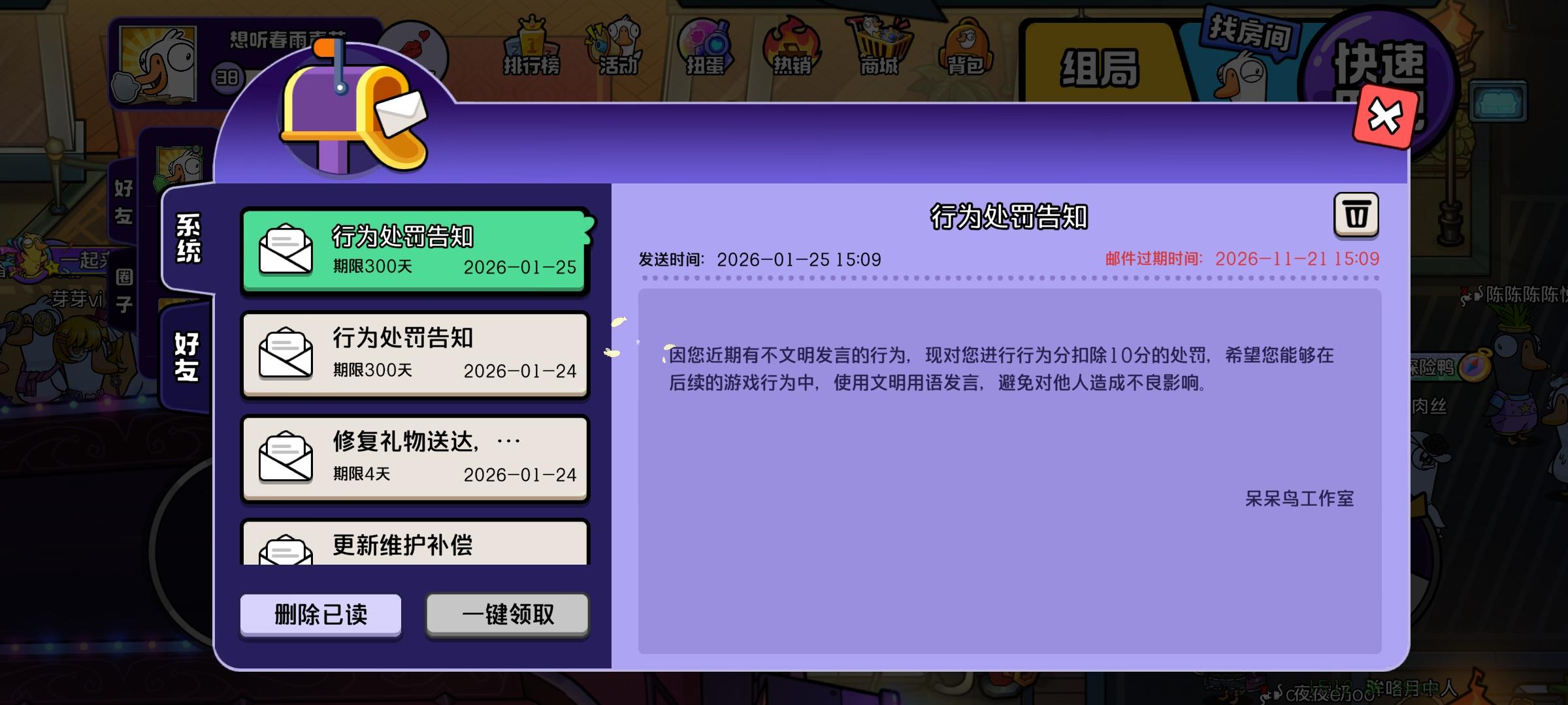 我们一开始玩的好好的他自己的行为诡异不怪我们怪他吧我们谁要出他有一个人没有听清楚要出谁 别人问了两句他就在那里开始骂骂咧咧后面我帮着说了两句话我没有说任何的脏话对局结束后他就举报我把我举报成功了我请问呢他骂人我不该说回去吗?还是说以后游戏里面被骂了嘴都不能还要我自己忍着呗游戏好玩我承认但是这个人人品是不是太过于低了 我没有骂人为什么举报我举报成功了?