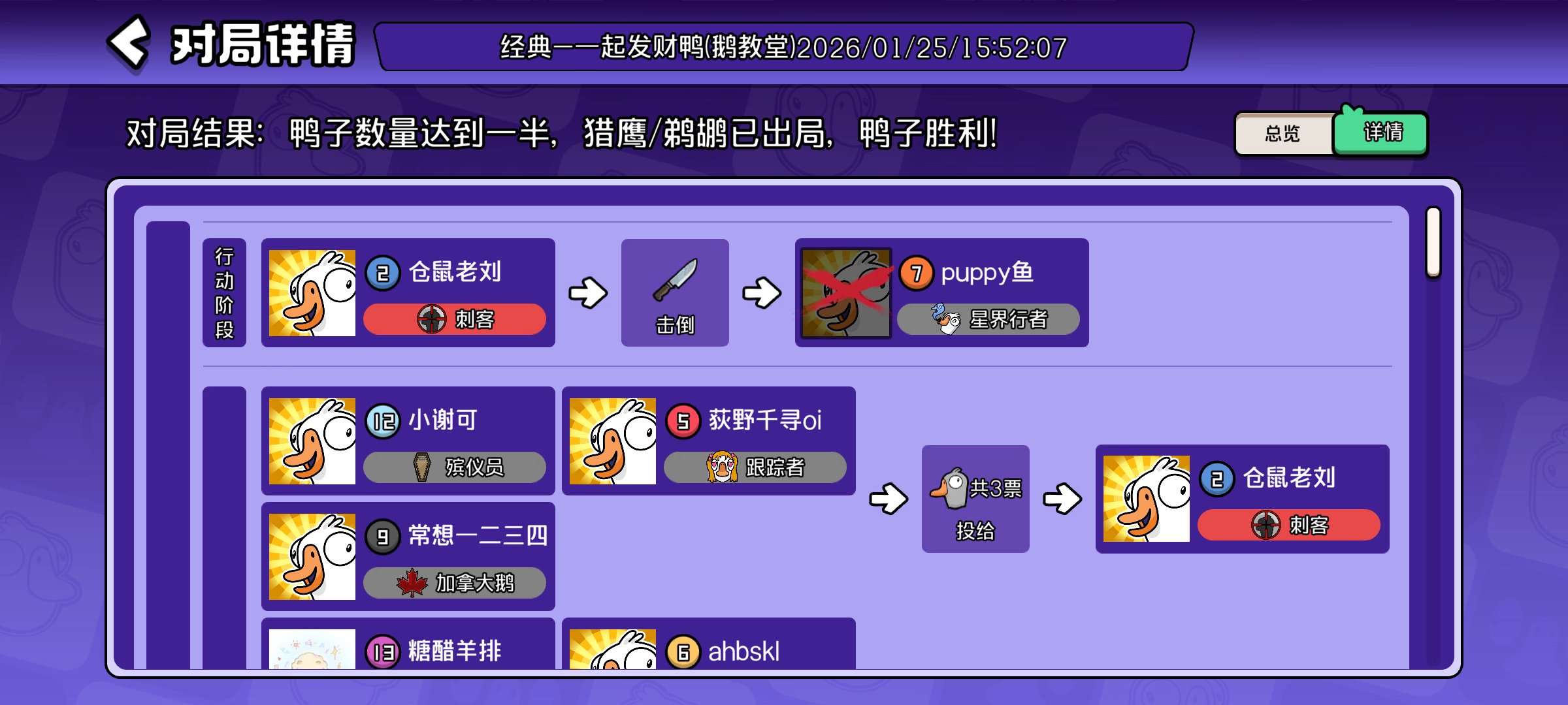 【新手必看】《鹅鸭杀》从零上手全攻略:角色 /地图/ 模式 / 发言全概括!哈喽,各位刚入坑的幸运鹅 & 潜伏的鸭子们!初次加入乐园,面对陌生的职业和地图,是不是有点迷茫?不知道选什么身份、哪种模式适合新手、遇到刺客 / 警长该怎么应对?这篇超全攻略把「角色图鉴 + 地图详解 + 模式玩法」打包奉上,萌新快码住,老玩家也来凑个热闹叭ヾ(●´∀`●) 一、超详细长图攻略一图流自取感谢 @鹅