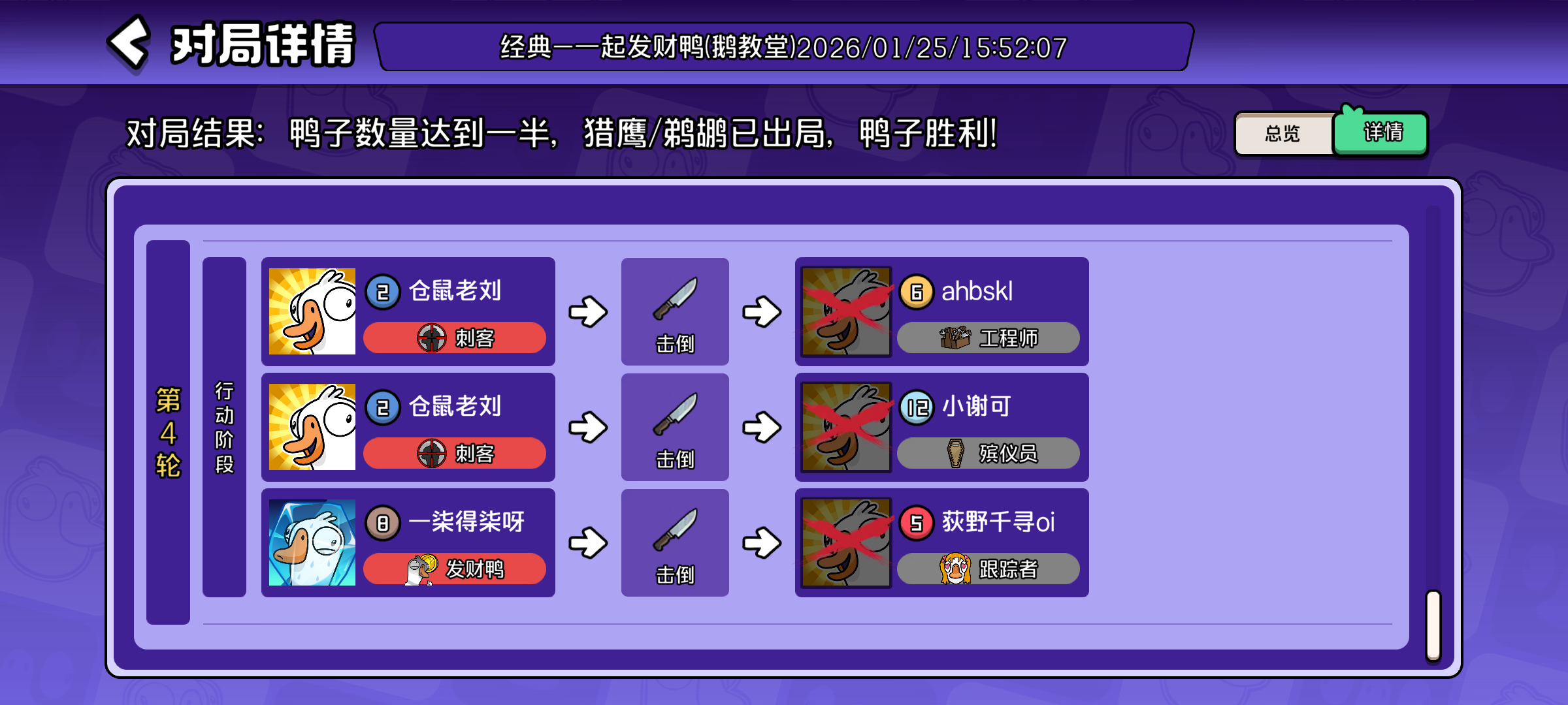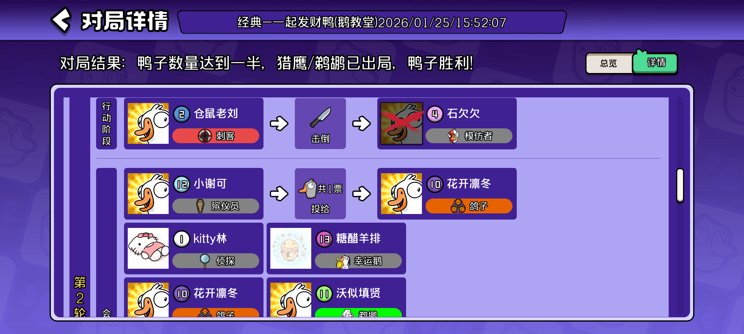 第一天玩,依旧新手局,第一次当鸭子直接杀完人跑掉没多久又跑回来报警,被观鸟指控我杀了人,然后我就直接承认了,第二次直接只敢搞破坏不敢杀人,是不是太怂了,每次都是匹配到会杀的鸭子同伴自己就可以搞搞破坏躺赢,都不敢杀人只能输掉比赛,真的不会撒谎#鹅鸭杀