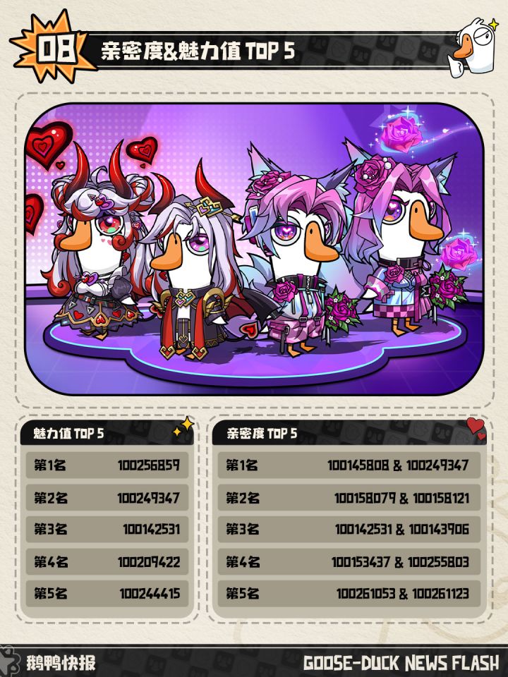 亲爱的幸运鹅们:「鸭力测试」测试以来,感谢大家的支持和积极参与游戏,正因为有了幸运鹅们的支持,我们才能收集到了大量的服务器信息及优化建议~首次「鸭力测试」计划将于9月25日2:00结束,即日起我们将停止招募新用户进入测试,服务器也将在9月25日2:00进入休眠状态,与各位幸运鹅们暂别。注意事项本次测试的用户会默认获得下次测试的测试资格会为玩家保留角色和部分数据到下一次测试停服后会清除当