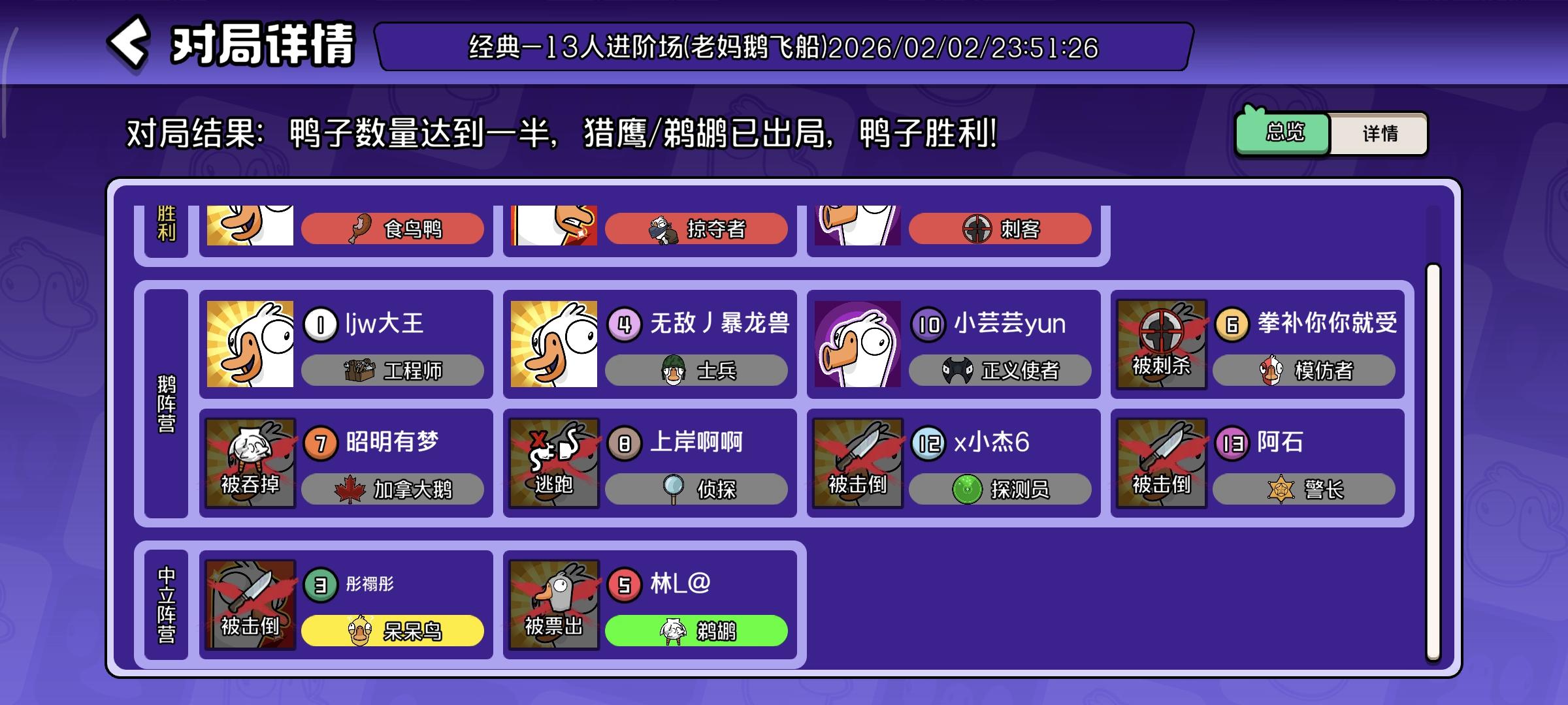 【新手必看】《鹅鸭杀》从零上手全攻略:角色 /地图/ 模式 / 发言全概括!哈喽,各位刚入坑的幸运鹅 & 潜伏的鸭子们!初次加入乐园,面对陌生的职业和地图,是不是有点迷茫?不知道选什么身份、哪种模式适合新手、遇到刺客 / 警长该怎么应对?这篇超全攻略把「角色图鉴 + 地图详解 + 模式玩法」打包奉上,萌新快码住,老玩家也来凑个热闹叭ヾ(●´∀`●) 一、超详细长图攻略一图流自取感谢 @鹅