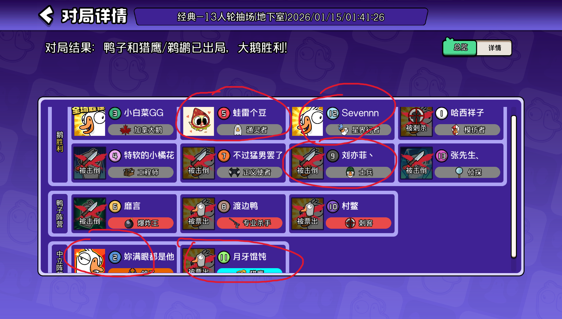 几个人熟人就喜欢玩场外,猎鹰从头到位就刀了一个人 动刀问起来就是我上头了他们叫我刀的,没理由的投人。都盘了七八轮了突然说第一轮我觉得这个人有问题 大家跟我一起投。喜欢玩好友局就玩你的好友局出来恶心人做什么。什么动刀的理由叫他们让我刀我就刀。真的玩游戏碰到这种人 真的是恶心#鹅鸭杀手游 #鹅鸭杀手游
