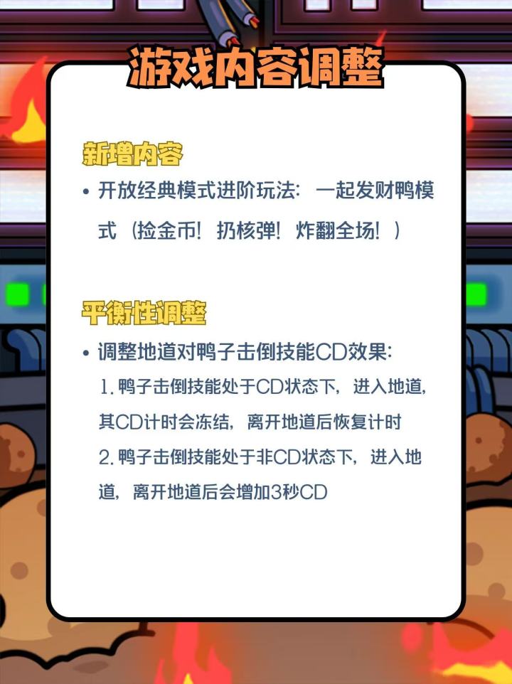 亲爱的幸运鹅: 服务器将于1月21日7:00-9:00停服维护。 具体维护时间视实际情况提前或顺延,请大家提前做好下线准备。 公测以来,终于首次进行玩法更新啦!为感谢大家这段时间的支持,本次维护结束后,各位幸运鹅可以在邮箱内领取「土豆服务器」会议铭牌,纪念共同度过的开服时光~*铭牌更换说明:获得会议铭牌后,点击背包或房间内与衣柜交互,进入换装页面后点击个性化-铭牌页签进行更换#鹅鸭杀手游