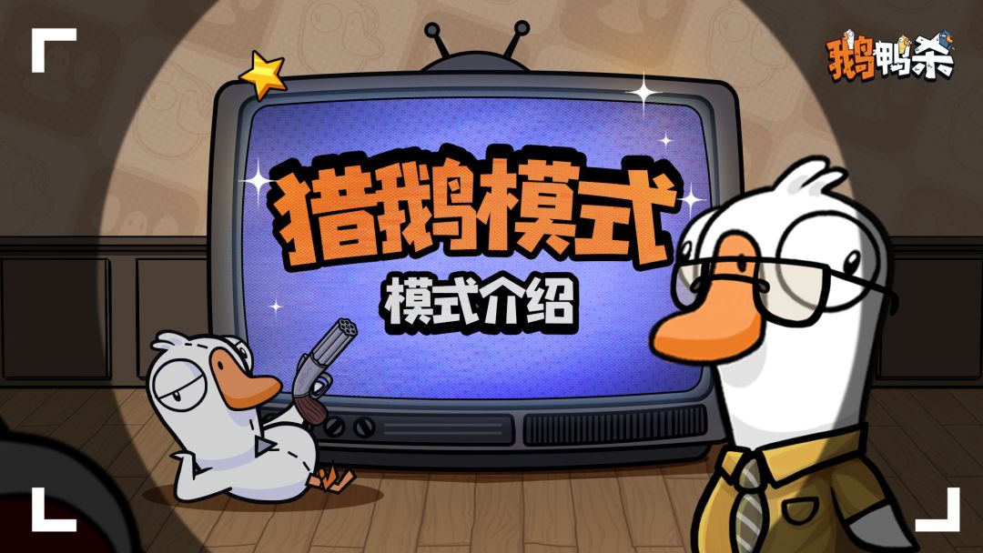 猎鹅模式今日上线! 听说现在鹅鸭杀鹅能拍鸭子板砖了? —— 模式介绍 —— 猎鹅是独立的非对称玩法,游戏分为鹅阵营和鸭子阵营,3名鸭子玩家需要在限定时间内狩猎5名鹅玩家。 • 鸭子一级拥有攻击技能,攻击命中鹅可以提升等级,二三四级分别解锁扫描,钩子,和飞行技能 • 鹅一级拥有闪避技能,鹅可以通过拾取地图上的经验球提升等级,鹅会在二三四级分别解锁,治疗队友、板砖和隐身技能 • 鹅阵营胜利条件:倒计时