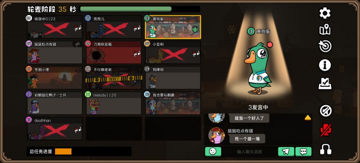 不是,你怀疑我?我要是坏,我早刀你了,拉这么多人一起走团建吗,继续做任务,过...—— 角色介绍 ——你可以通过完成任务来增加你的赏金,生存到最后才能得到该赏金,凶手只能再和你单独相处的时候淘汰你。#鹅鸭杀 #鹅鸭杀手游 #发现好游戏 #游戏日常
