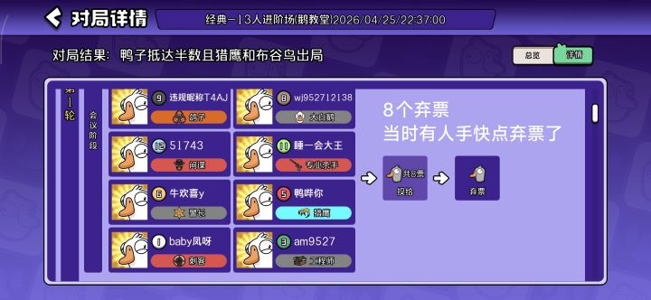 补充:这种人弃票,当时13都贴脸骂人了,搞得5中立没票的也贴脸跟13骂起来了。9号因为看到两轮票型退出不玩挂机。希望官方看到能重视这种问题。