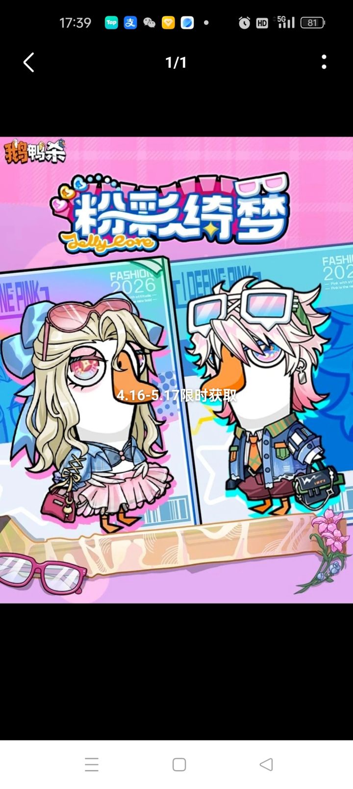 鹅友们集合!鹅鸭杀全新Jellycore系列皮肤「粉彩绮梦」明日正式上线,甜酷风颜值直接封神!🌸 甜妹粉裙搭配牛仔元素,甜度超标;🕶️ 潮男工装配粉白渐变发,护目镜造型帅到犯规!⏰ 限时获取:4月16日 - 5月17日🎮 抽取方式:扭蛋机S2赛季·史诗卡池快叫上搭子一起换上粉彩新装,做庄园里最靓的仔!👉 #发现好游戏 #游戏攻略 #游戏日常 #游戏杂谈 #